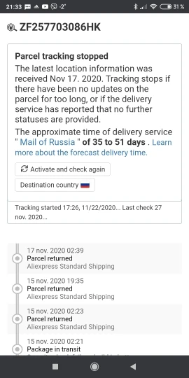 Ждал заказ 2,5 месяца, трек встал на момент отправки товара, ничего не пришло, вернули деньги