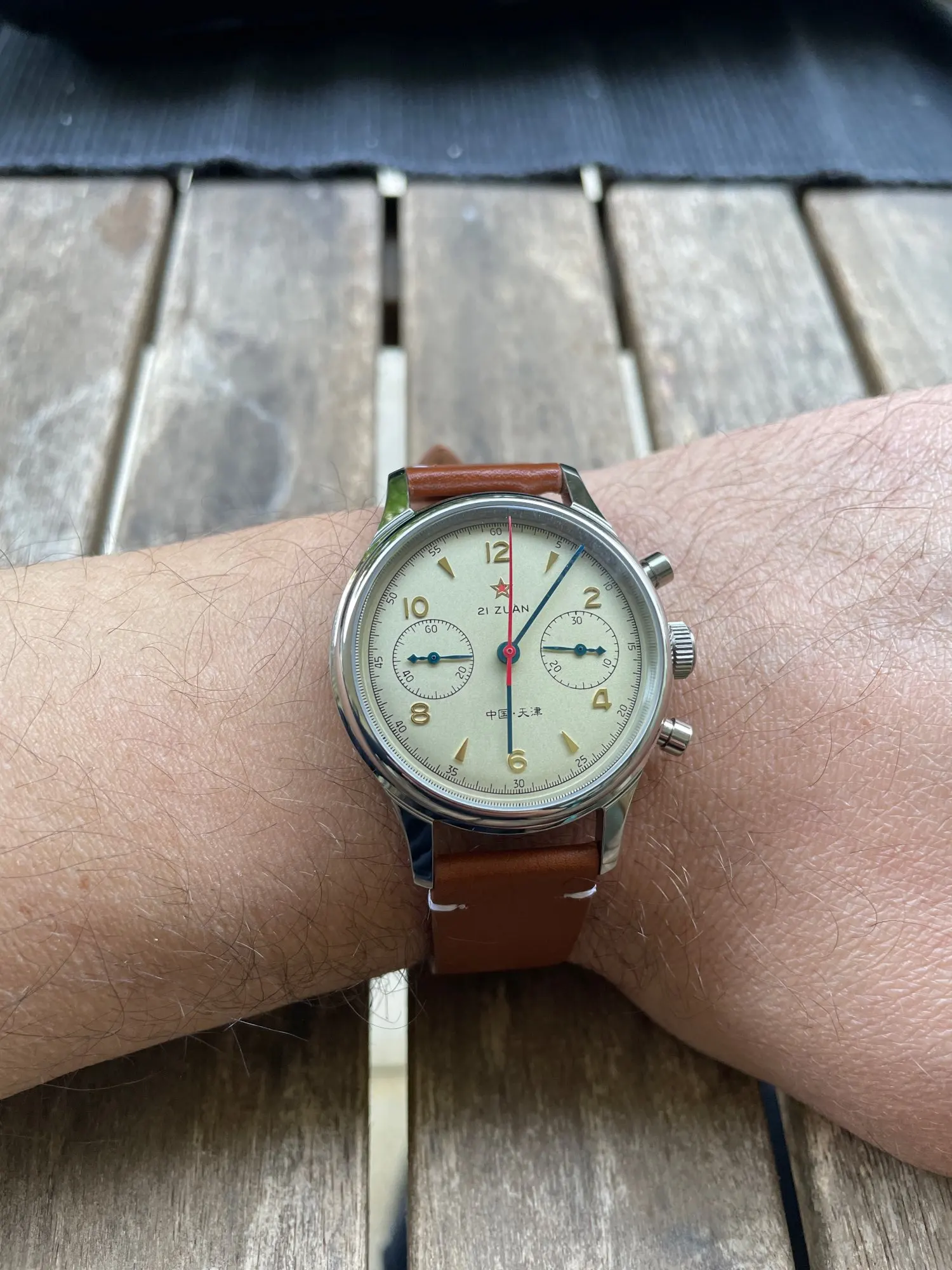 Секундомер с секундной стрелкой не сбрасывается точно в 12 положении. В противном случае комбинезон часов очень приятный.