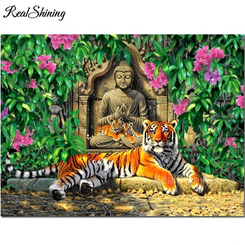 5D Мозаика "статуя Будды и тигра семья" полный квадратный Круглый Вышивка мозаика Алмазный Набор сделай сам ручная работа алмазная живопись FS6896