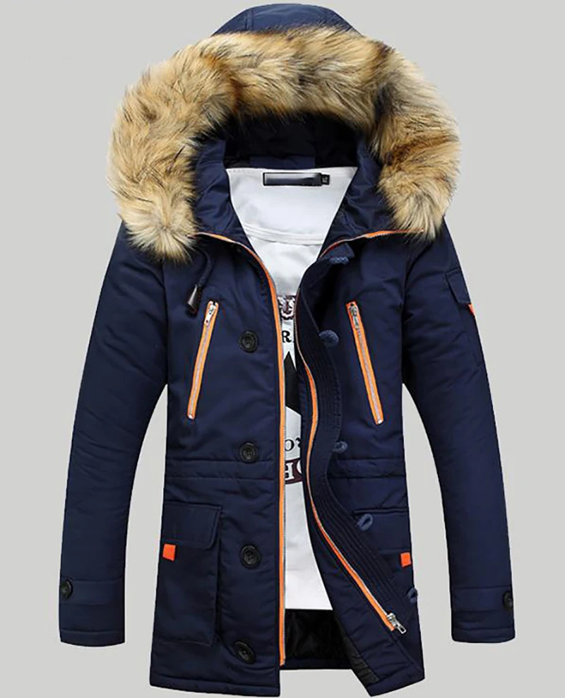 Зимние куртки, пальто, парки, шапки, тонкое пальто, модная повседневная мужская одежда, теплая Толстая ветрозащитная Меховая куртка с воротником MOOWNUC
