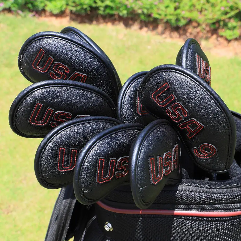 Железная накладка на голову для гольф-клуба, США, с краснымбелым стежком, чехлы с железной головкой для гольф-клуба, железные головные уборы, чехлы на танкетку 10 шт.компл.