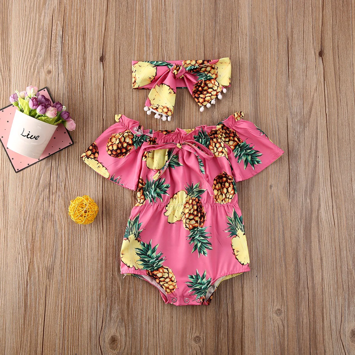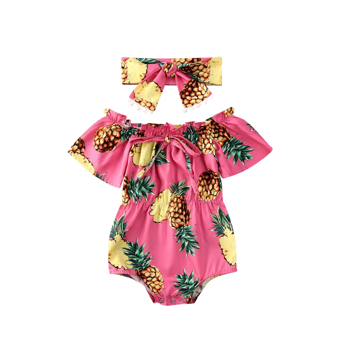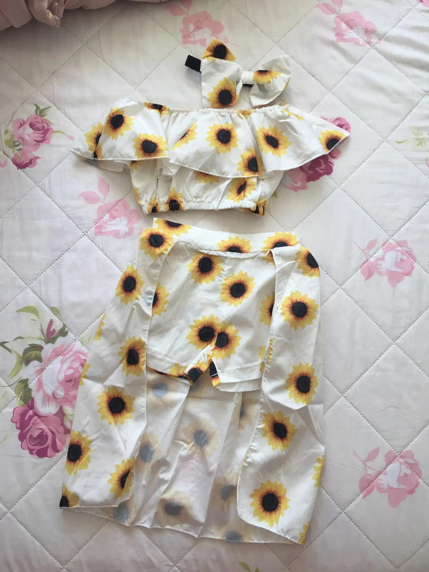 Комплект летней детской одежды с принтом подсолнуха, топ с оборками и длинная повязка на голову, комплект из 2 предметов для маленьких девочек