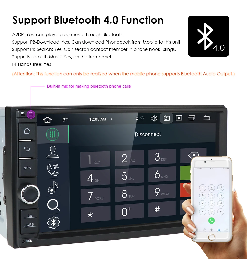 Емкостный сенсорный экран IPS 7 дюймов, 4 Гб ОЗУ + 64 Гб ПЗУ, станд...