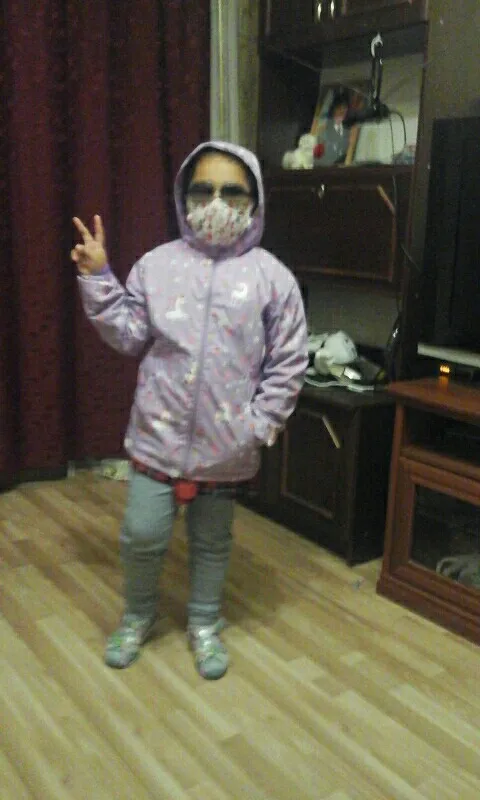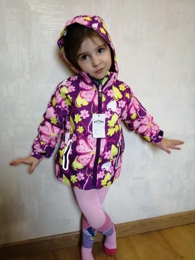 Доставка месяц. Куртка супер подкладка байка, а где рукава просто трикотажная ткань. Швы ровные, я очень довольна. На стройную девочку ростом 105 см (4 года) заказала размер 5(110), оказался в самый раз, думаю на весну и осень хватит. Достойная куртка, я очень довольна