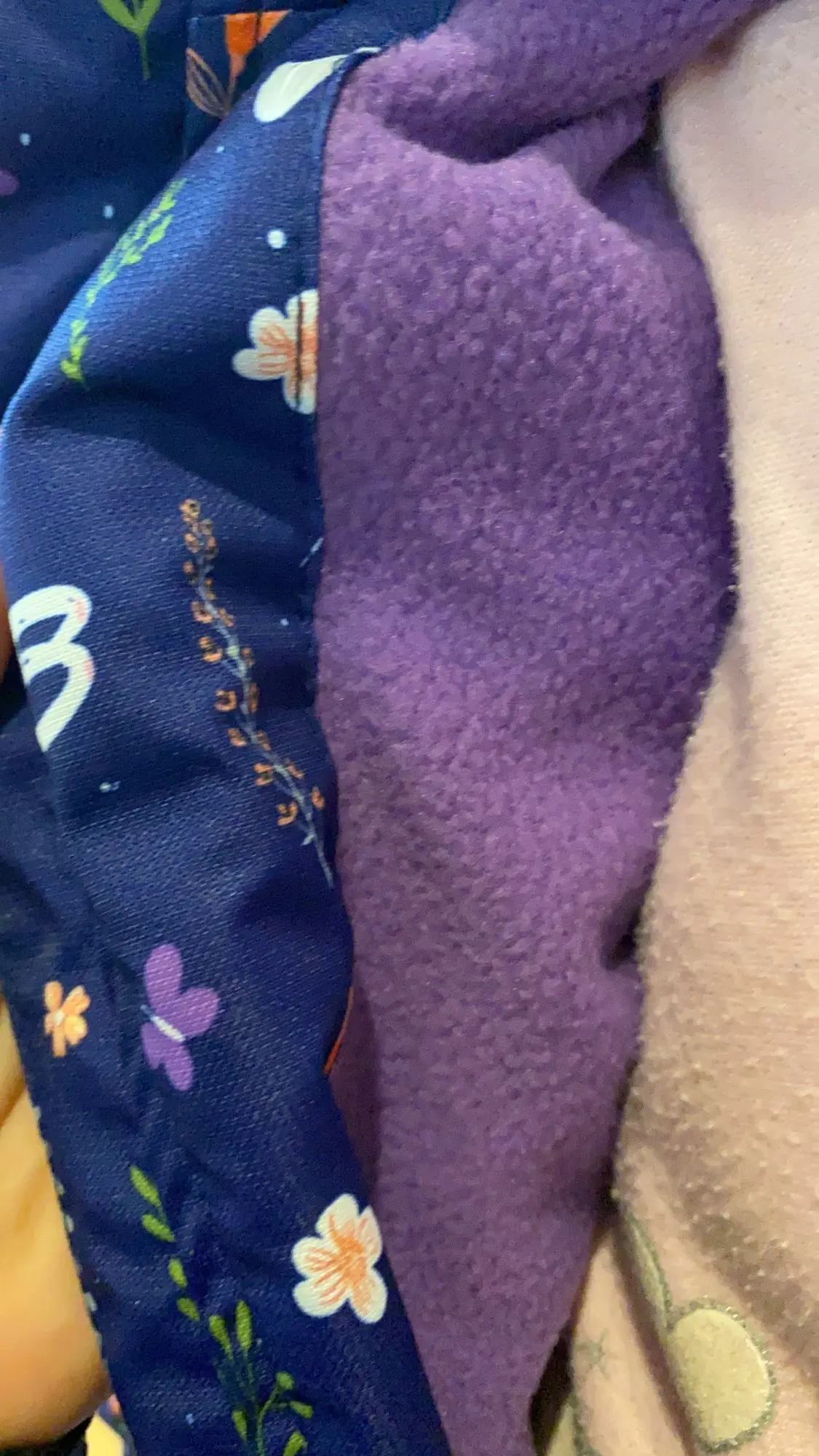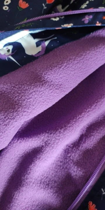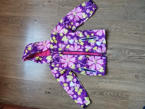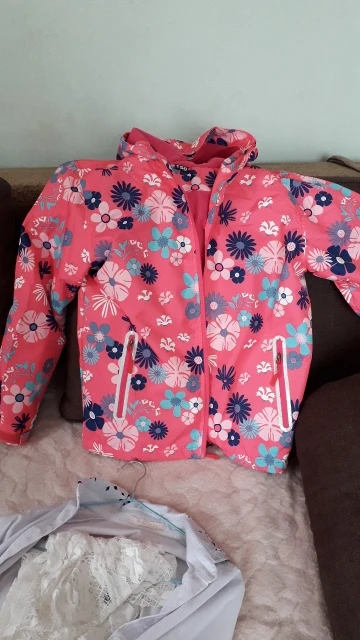 супер куртка, мне понравилась: ткань плотная не особо шуршит, флис везде, в тч в рукавах. на девочку 110см размер 6 (120 на бирке)с мин запасом. смотрится отлично, яркая, красивая. трека Китае не отслеживался, пришла примерно за 2.5 недели. продавец общительный, хотя отправил заказ не сразу