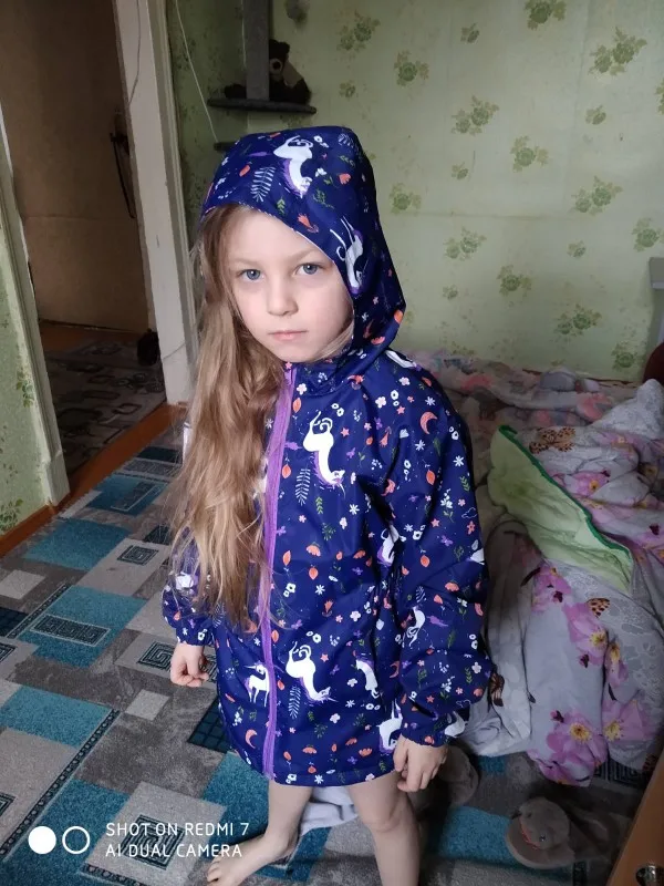 Очень хороший плащ-ветровка, теплая и яркая, нам очень понравилась, рост 105 см -размер 7(120) сел идеально, рекомендую всем, ветровка шла месяц до Бурятии