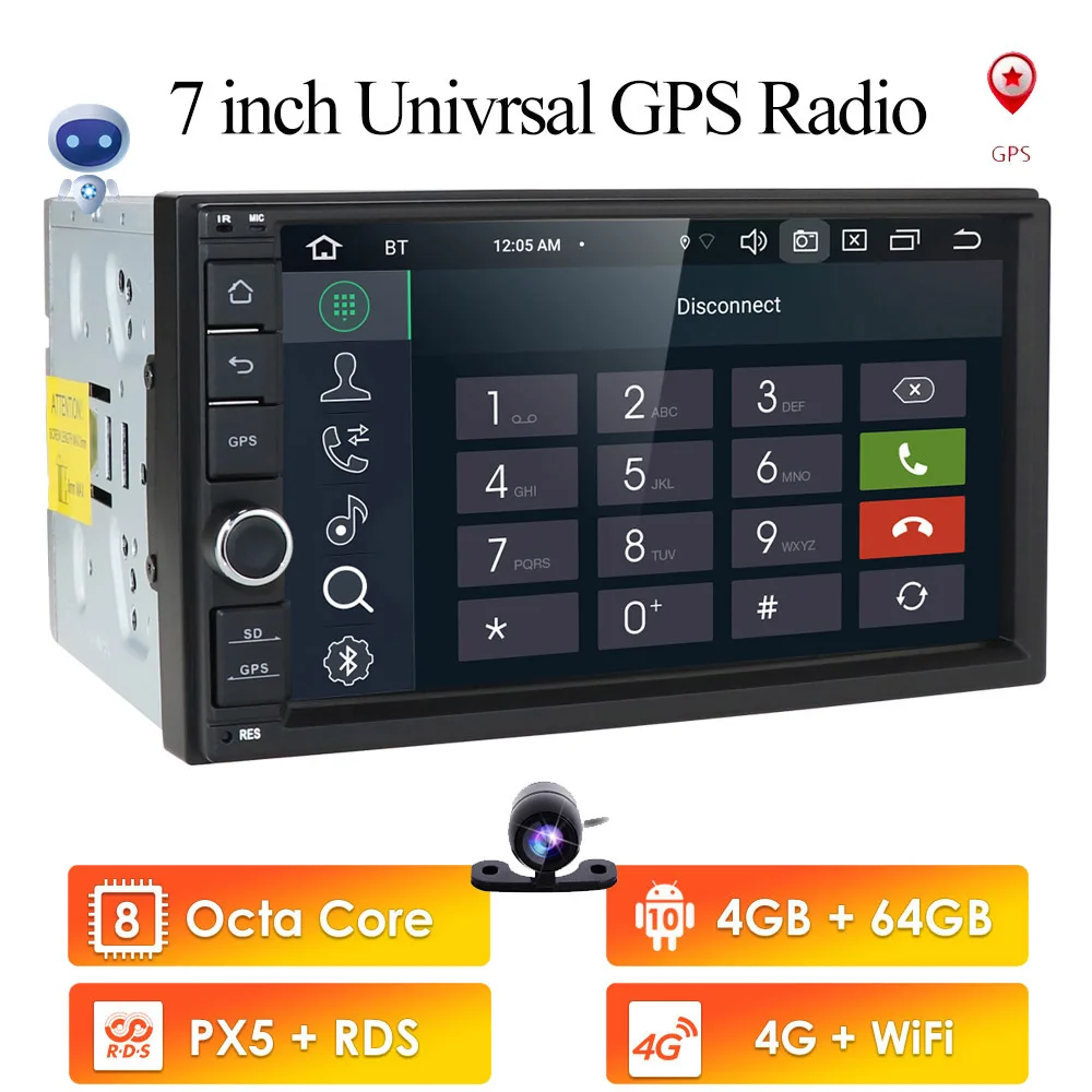 Универсальная Автомагнитола 2 Din, 7 дюймов, Восьмиядерный процессор, Android 9,0, 4 Гб + 64 ГБ, стерео, GPS-навигация, Wi-Fi, сенсорный экран 1024*600, 2din, автомобильный ПК DAB + SWC