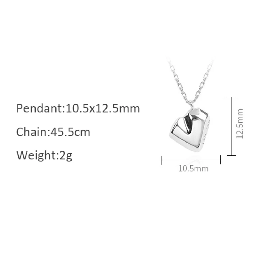 Ожерелье с кулоном в форме сердца, 925 пробы, серебристый неправильной формы геометрический дизайн, для невесты, ювелирное изделие Свадьба Помолвка