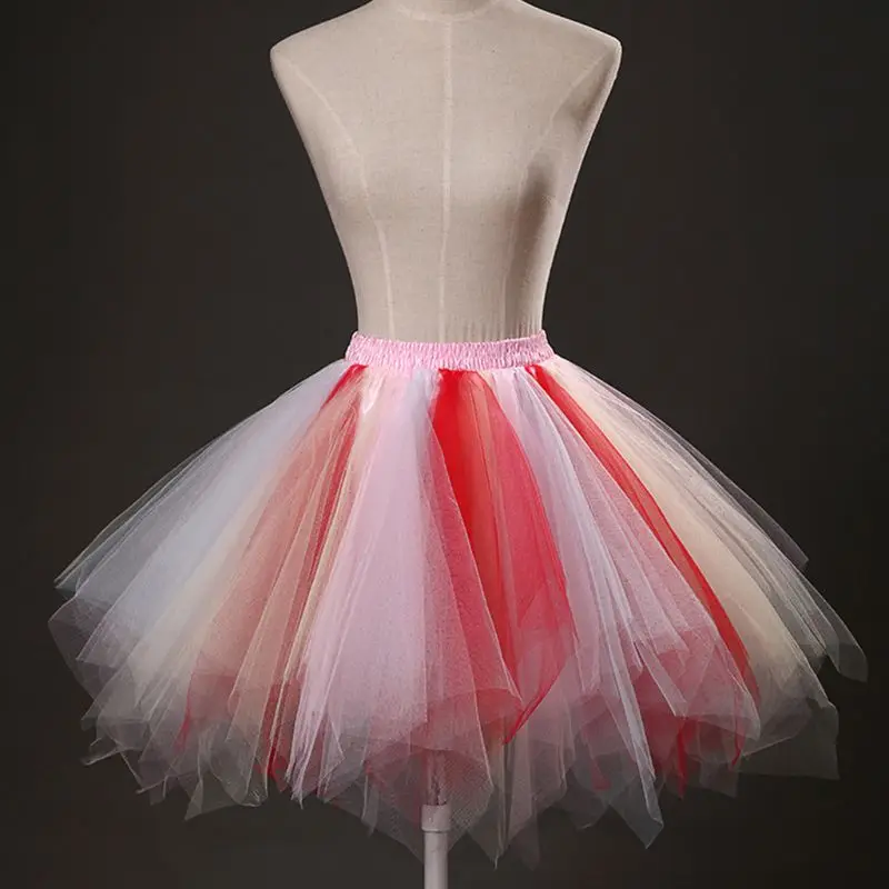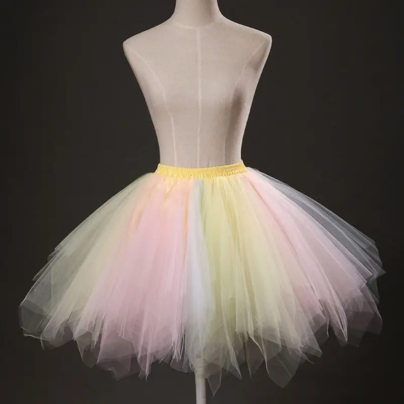 Пышная Короткая юбка для девочек, радужная Тюлевая мини юбка, кринолиновая Нижняя юбка для коктейльных платьев