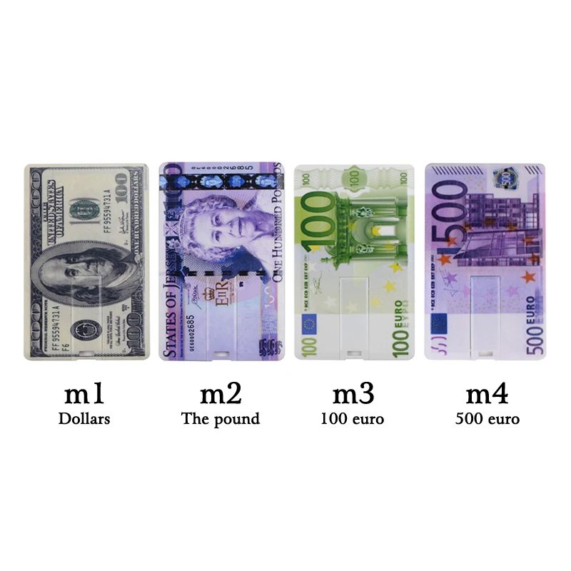 Флеш-накопитель 64 ГБ, 32 ГБ, 16 ГБ, 8 ГБ, 4 Гб, флэш-накопитель для денег, usb флеш-накопитель 128 ГБ, 256 ГБ, долларовый фунт, карта памяти европейского стандарта, мини-флешка