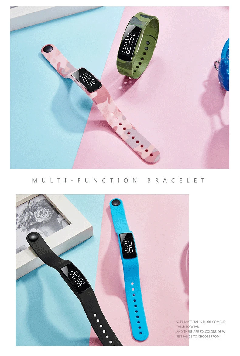 Цифровые часы женские, камуфляжные, водонепроницаемые, с зарядным у...