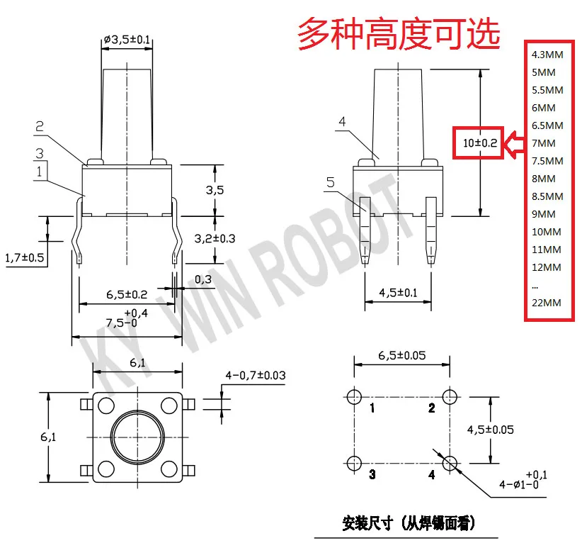 50 шт. 6x6x4. 4-контактный тактовый переключатель для индукционной плитыцепи кнопка на плате, 356789101112131422 мм