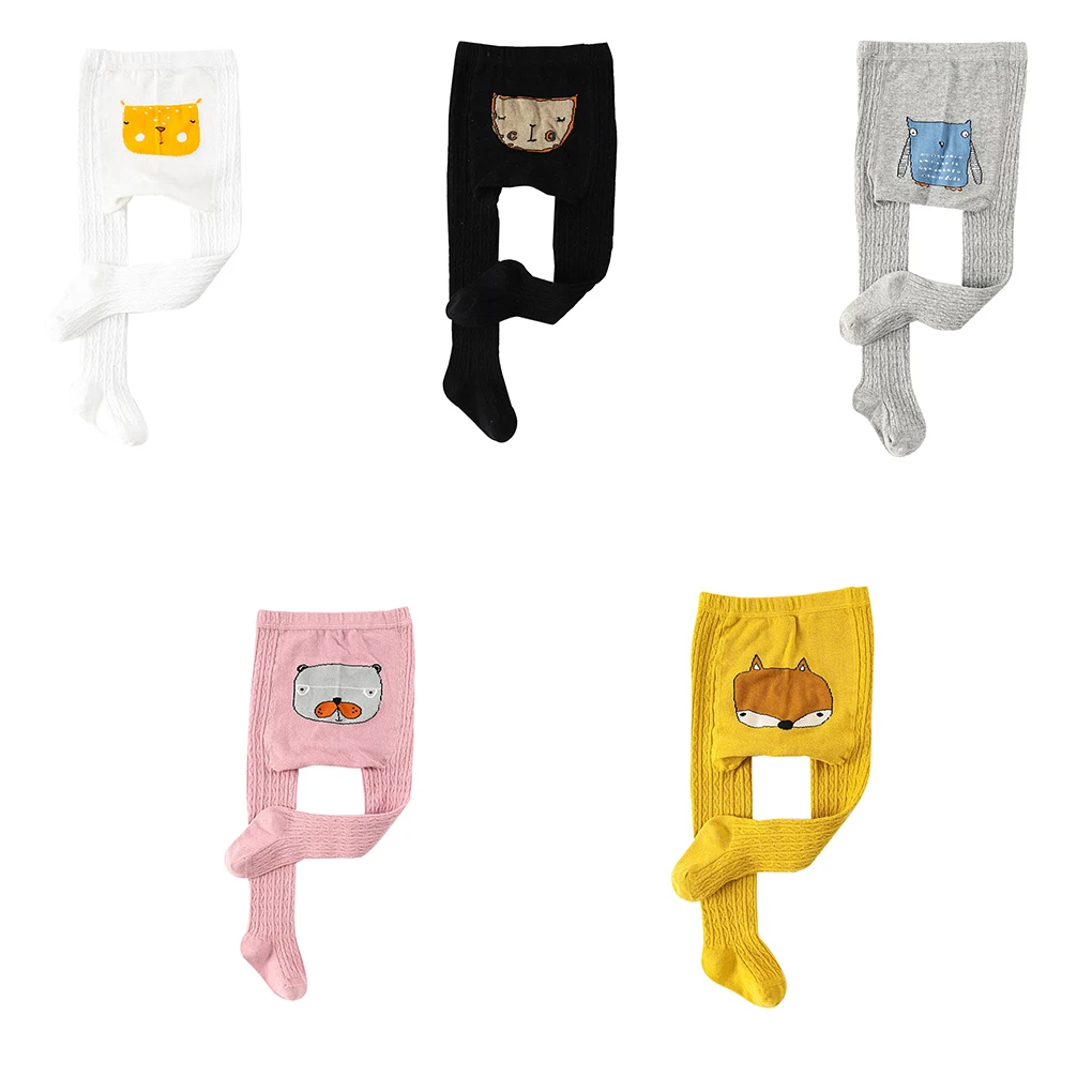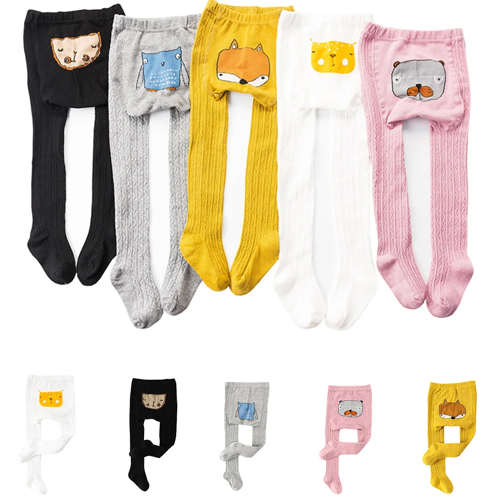 Детские эластичные колготки для девочек, хлопковые чулки с рисунками животных для малышей, Осенние вязаные чулки для маленьких детей