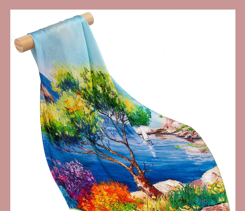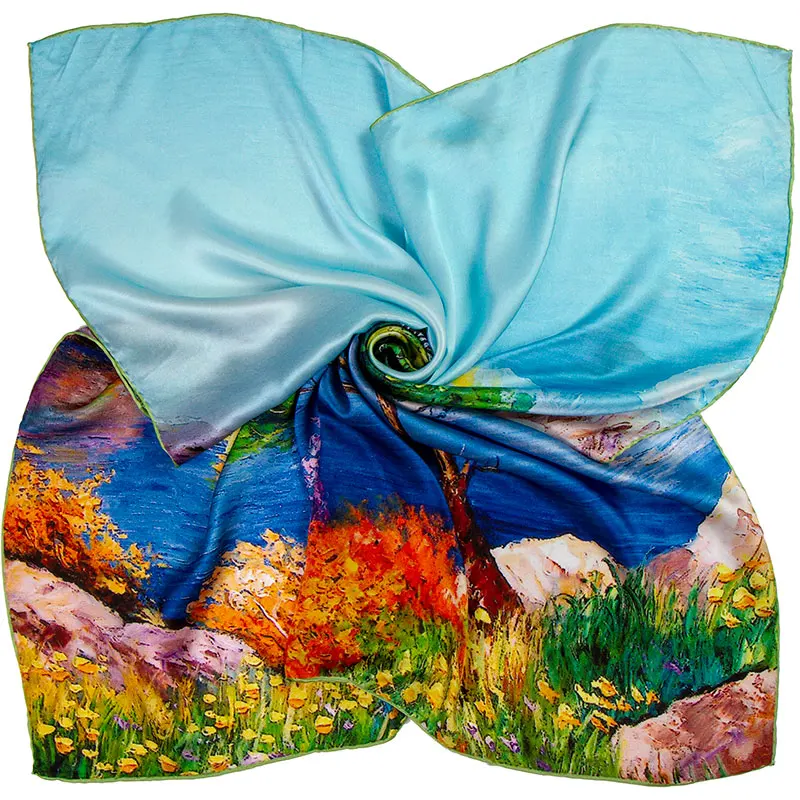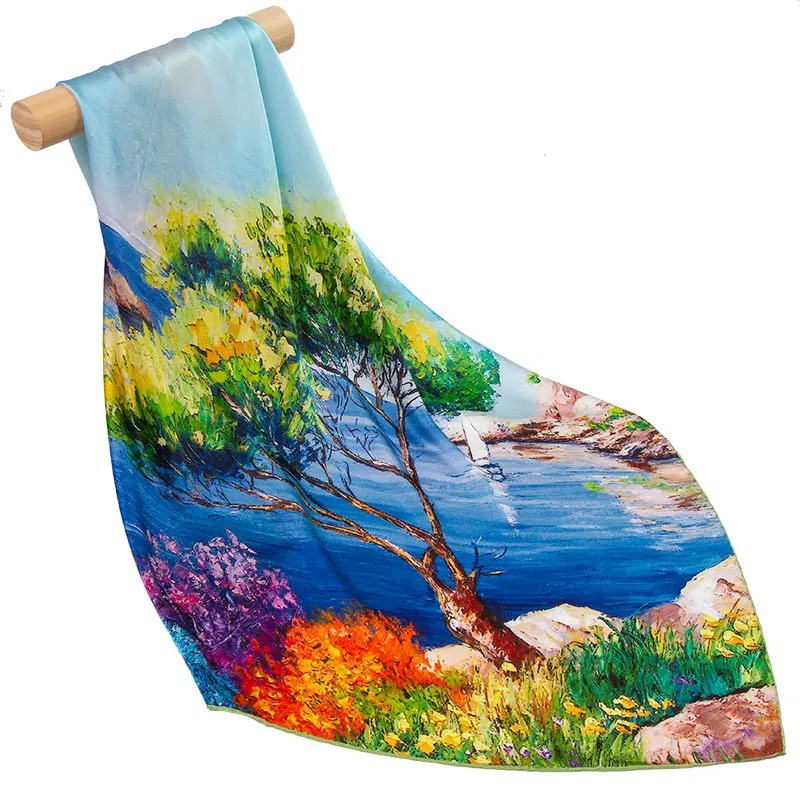 Шарф женский из 100% чистого шелка, хиджаб с изображением морского дерева, женский шарф для волос, художественный квадратный шелковый головной платок с картиной маслом, бандана на шею