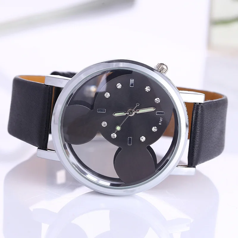 Модные детские часы MicMouse, подарок для мальчиков и девочек, детские Мультяшные наручные часы, женские часы из полого стекла и кожи