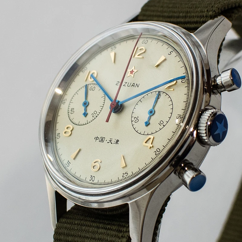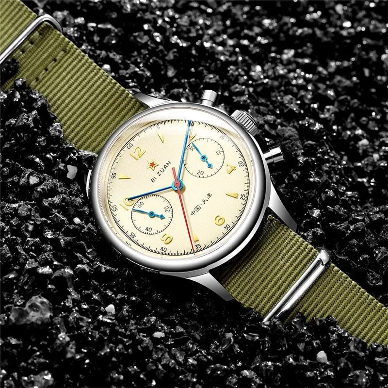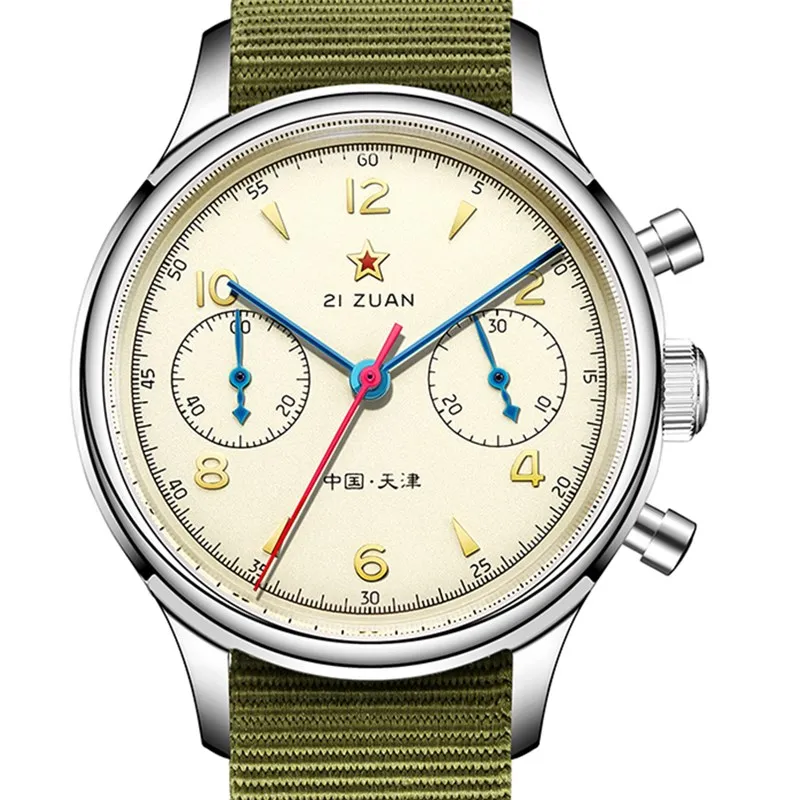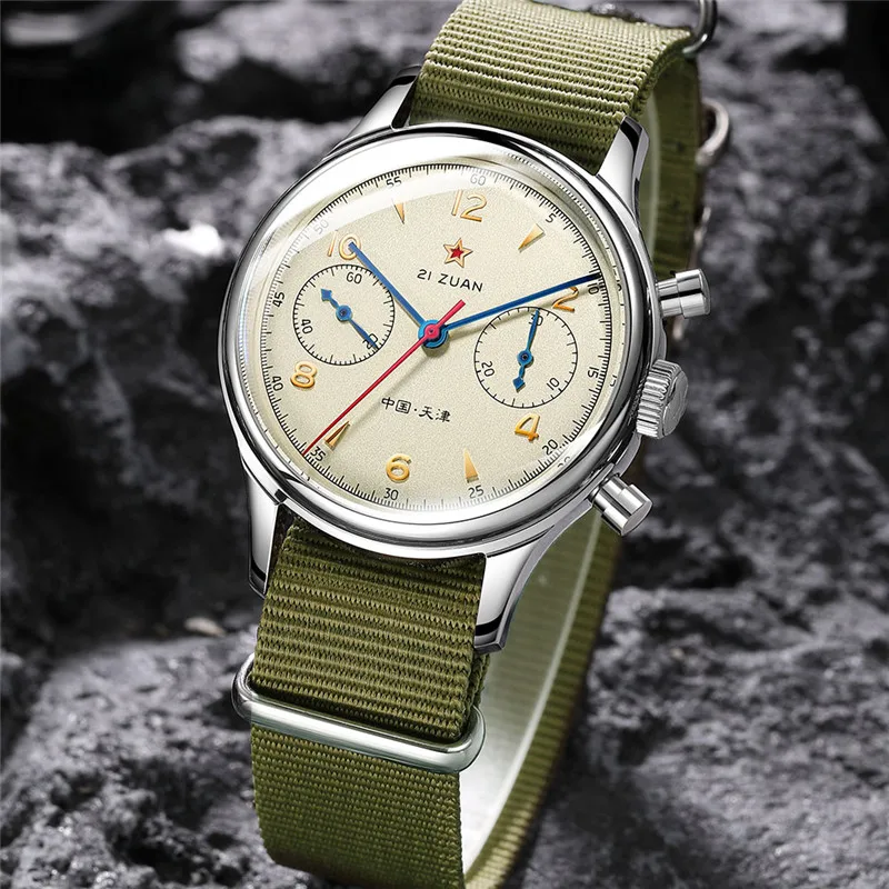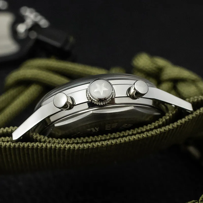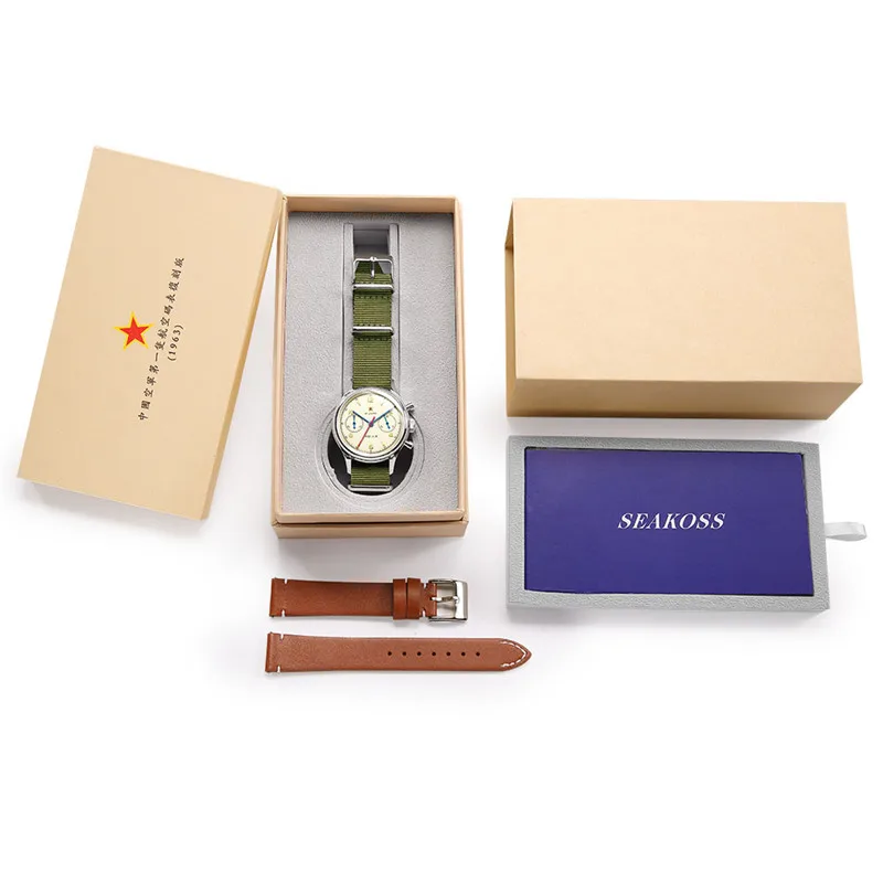 Часы SEAKOSS Мужские Наручные Механические с хронографом и Т-сапфировым ремешком, армейские, с хронографом ST19 Seagull 1963, 38 40