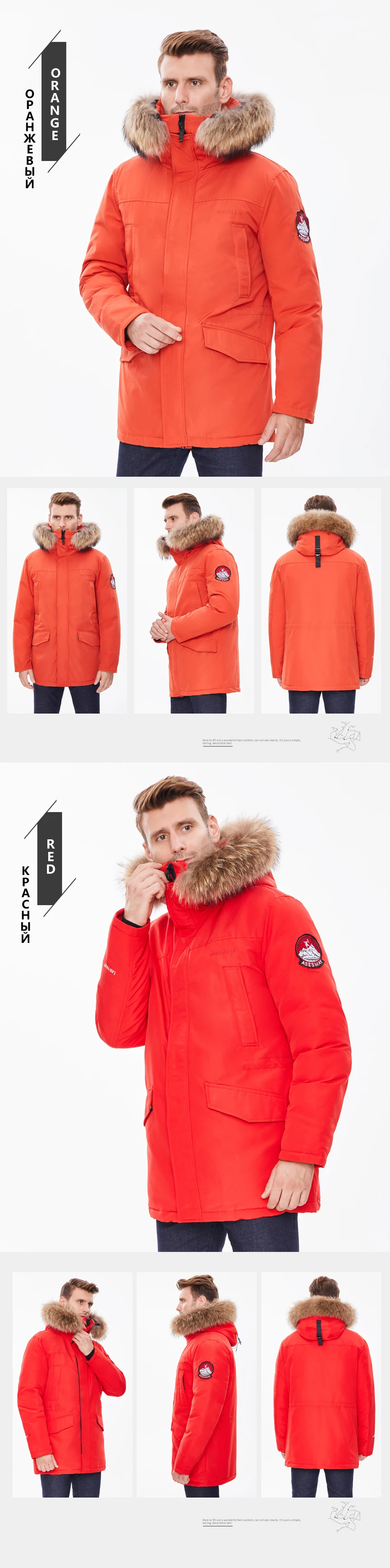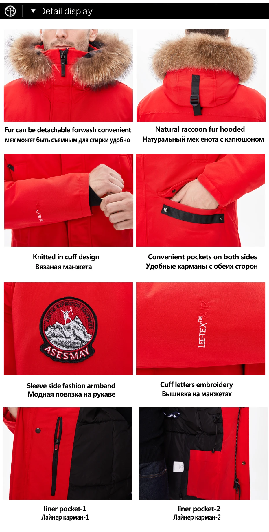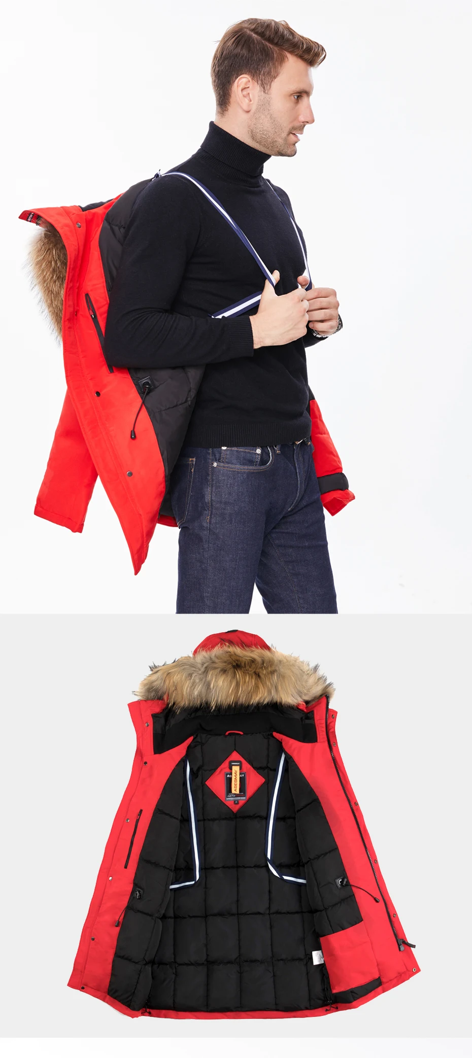 Мужская зимняя куртка Asesmay, парка с капюшоном из меха енота, Толстая теплая куртка, оранжевые куртки со съемными Подтяжками