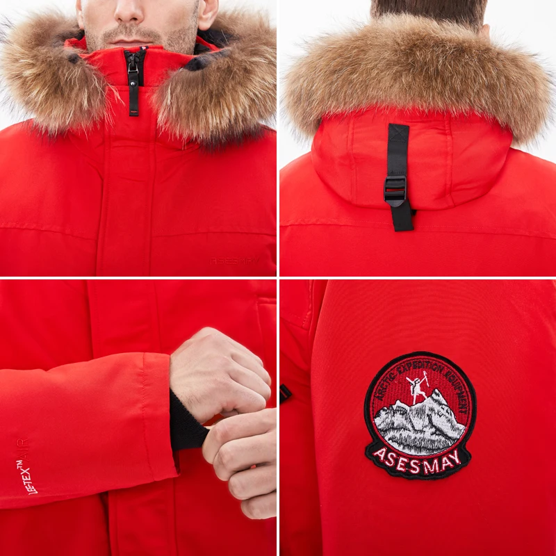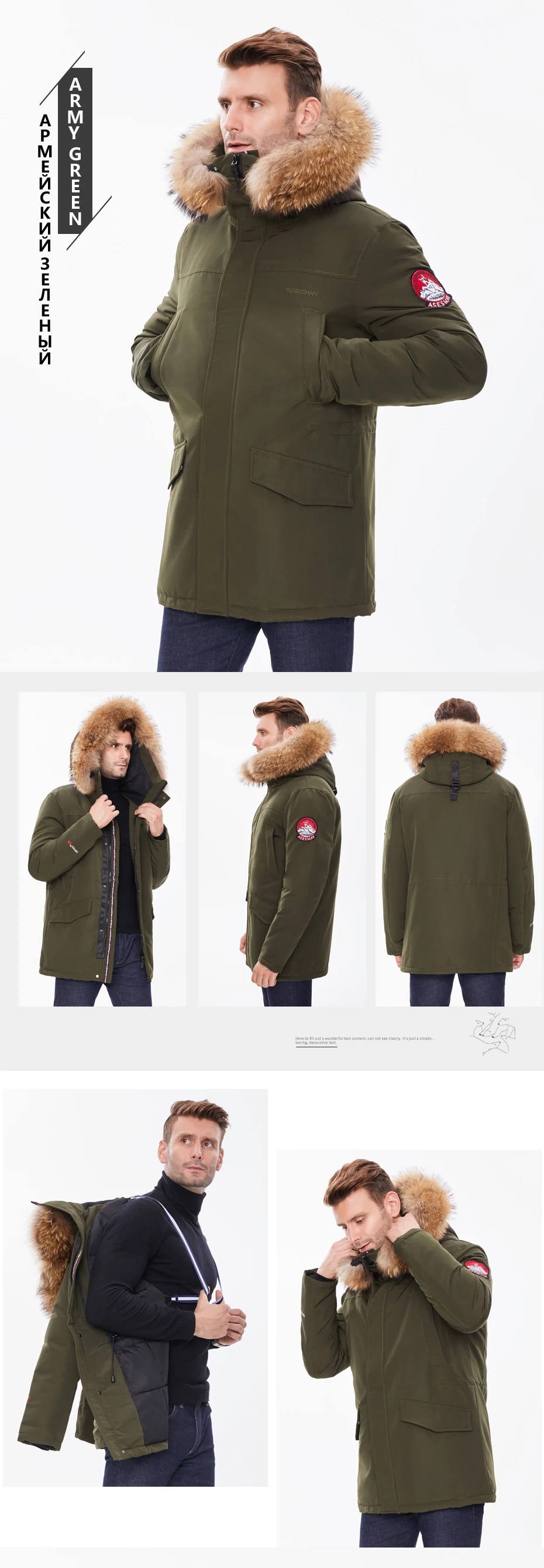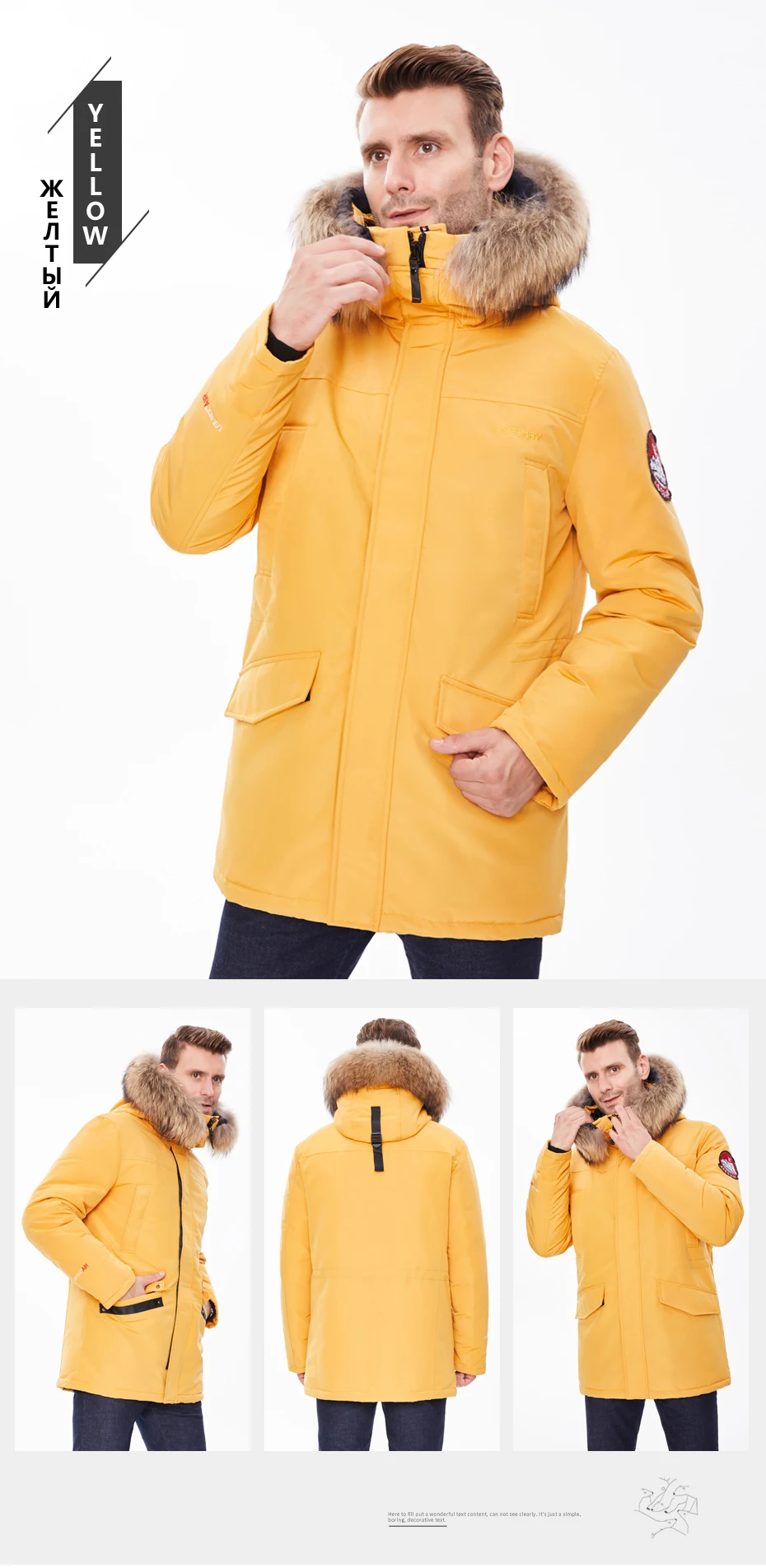 Мужская зимняя куртка Asesmay, парка с капюшоном из меха енота, Толстая теплая куртка, оранжевые куртки со съемными Подтяжками