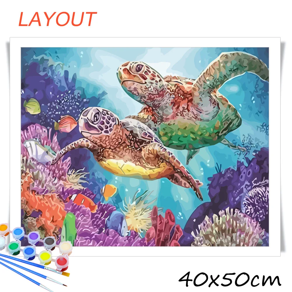 AZQSD краски по номерам Животные Комплект картины маслом по номерам Черепашки-ниндзя Раскраска по номерам Искусство Рисунок 50x40cm