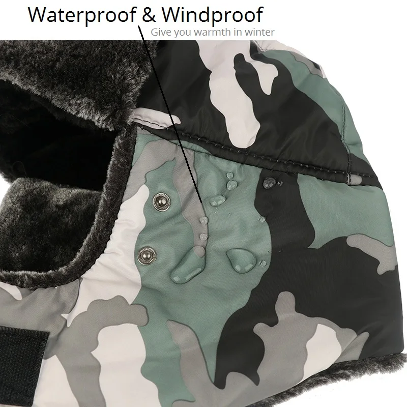 Шапка-бомбер CAMOLAND унисекс, камуфляжная шапка-ушанка для русской шапка охотника, с искусственным мехом, зимняя Лыжная шапка