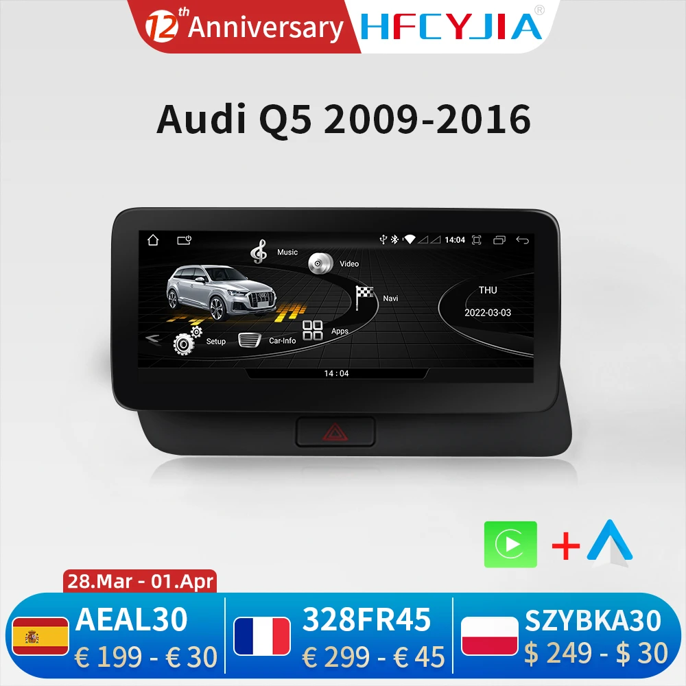 Автомобильный планшет Audi Q5 10,25-2009, диагональ 2016 дюйма, Android 10, Wi-Fi 2 + 32 ГБ, сенсорный экран Google IPS, GPS, Navi, мультимедийная система, радио, Carplay