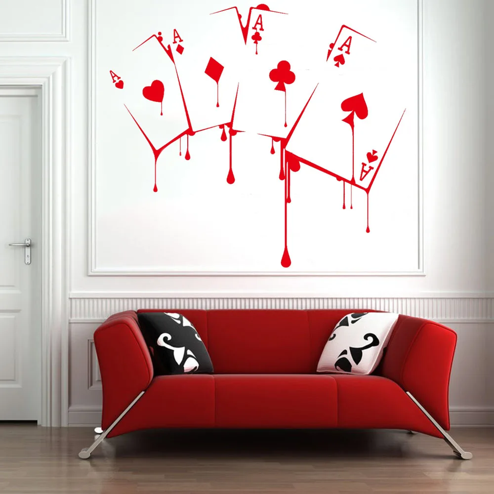 Настенная виниловая наклейка, наклейка покерные карты для казино, азартный игрок, украшение для дома, аксессуары для спальни, дизайн интерьера дома C639