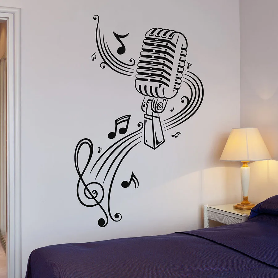 Музыка Примечание виниловая наклейка на стену микрофон крутые наклейки на стену спальня музыкальная студия караоке интерьерное искусство декоративное окно наклейки S1098