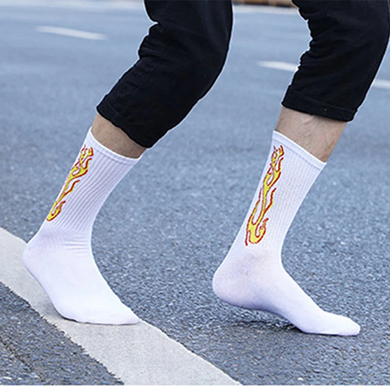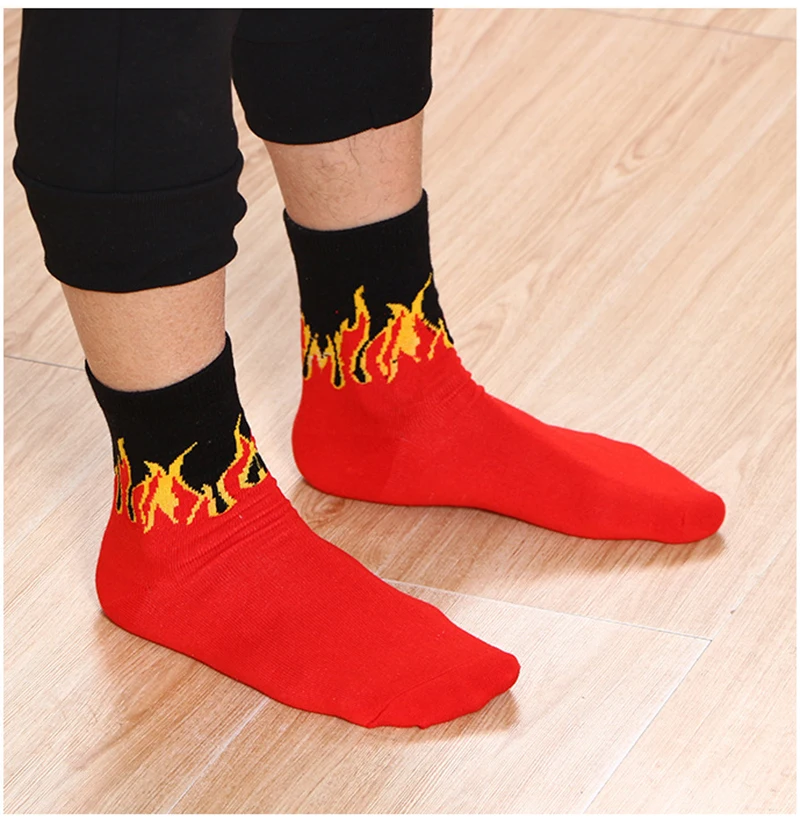 Носки мужские хлопковые, в стиле хип-хоп, с красным пламенфонарь