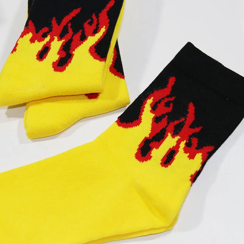 Мужские модные носки в стиле хип-хоп, яркие цвета, с красным пламен...
