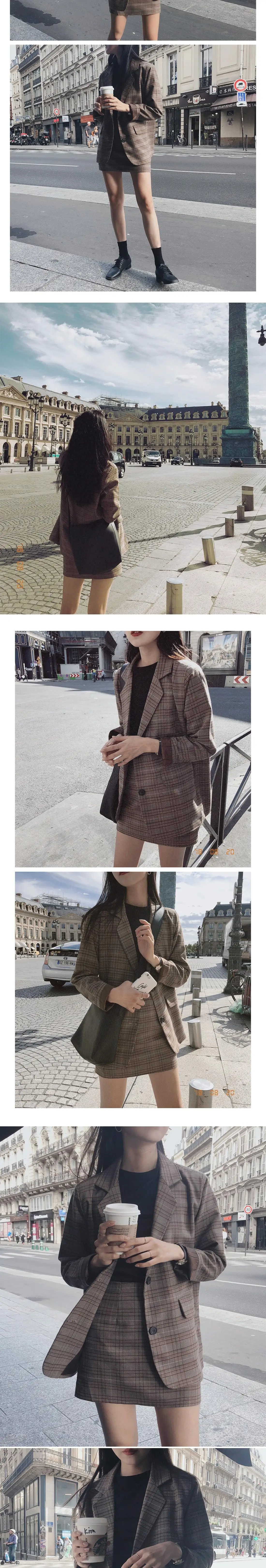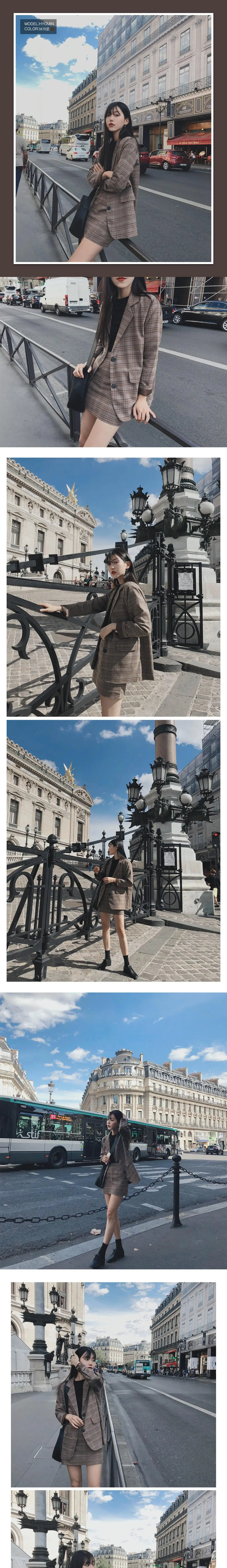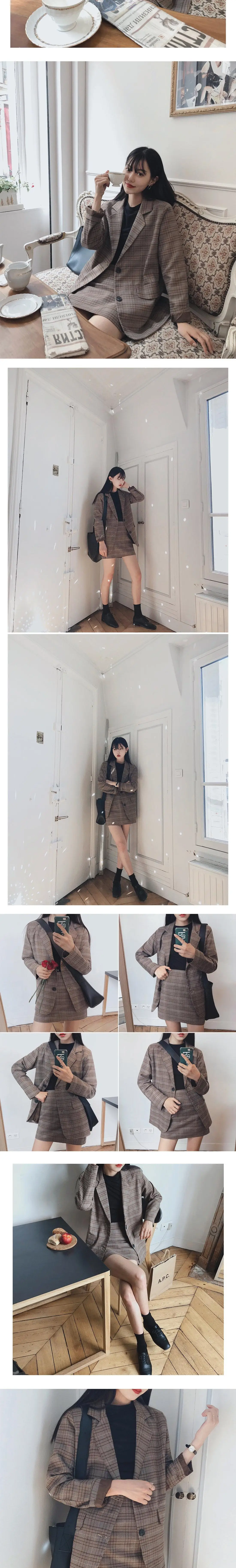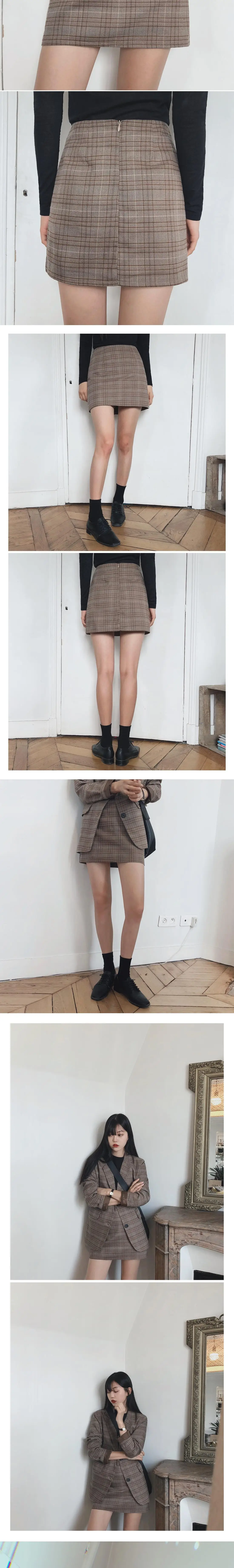 Женский осенний комплект из двух предметов, клетчатый Элегантный комплект с юбкой