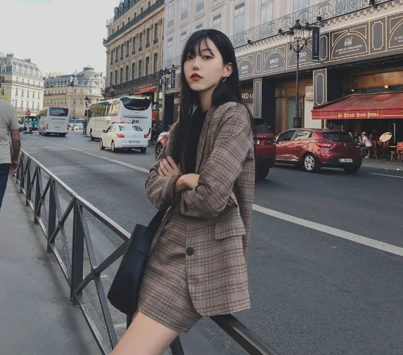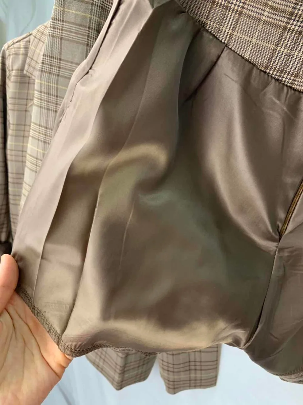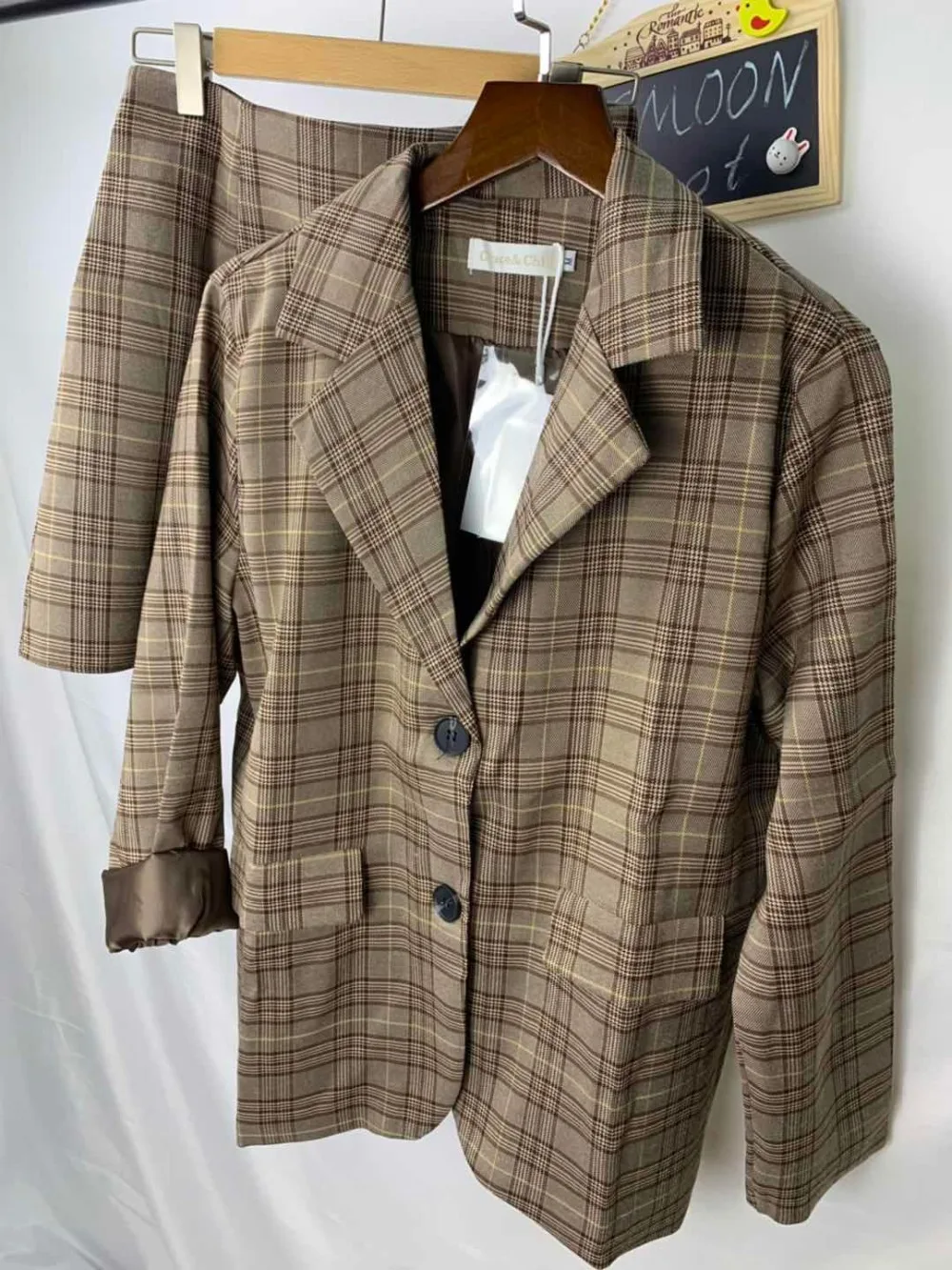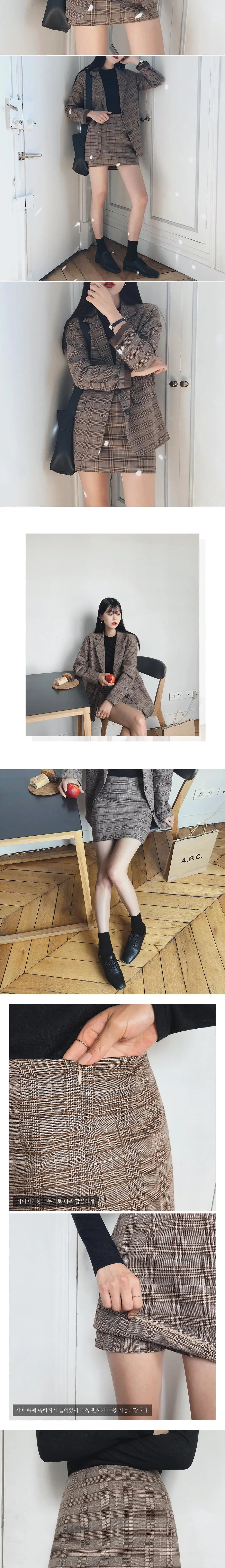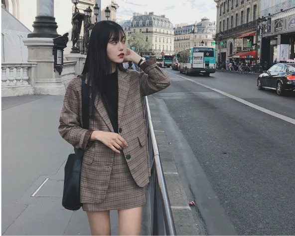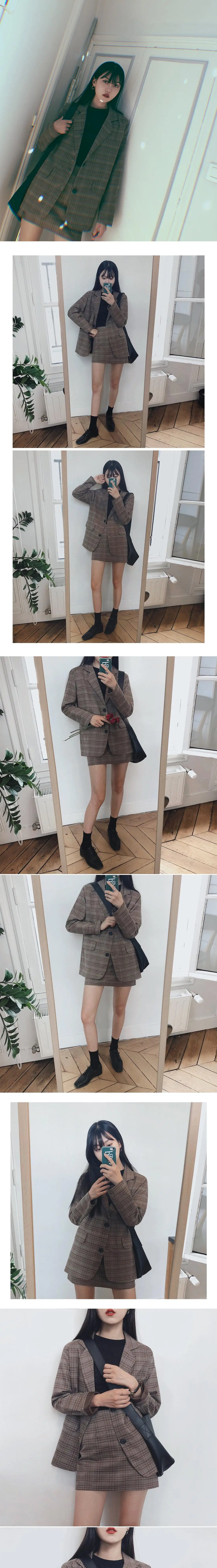 Женский осенний комплект из двух предметов, клетчатый Элегантный комплект с юбкой