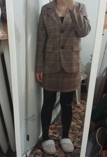 Я думал, что размер должен быть больше, так как у меня большая грудь, но это была ошибка. Блейзер оказался очень мешковатым. Внутри есть подкладка. Он довольно тонкий и нет наплечных подушек. Я всего лишь 159 см, поэтому Блейзер опускается на бедрах.