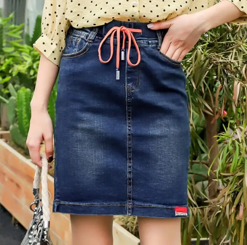 Джинсовая юбка с высокой талией, эластичная, трапециевидная, для осени, размера плюс 3XL!2021