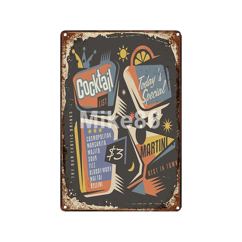Mike86 маркарита коктейль жестяная вывеска Винтаж паб железная живопись пользовательский постер Искусство 20*30 см LT-1905