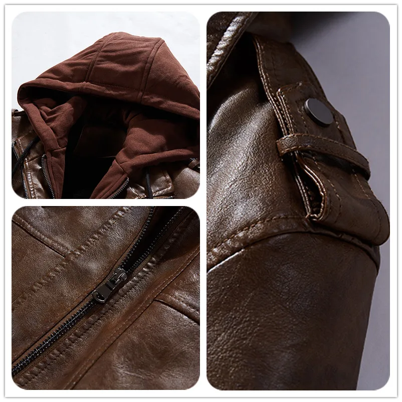 Мужская Байкерская кожаная куртка, приталенная куртка с капюшоном, ...