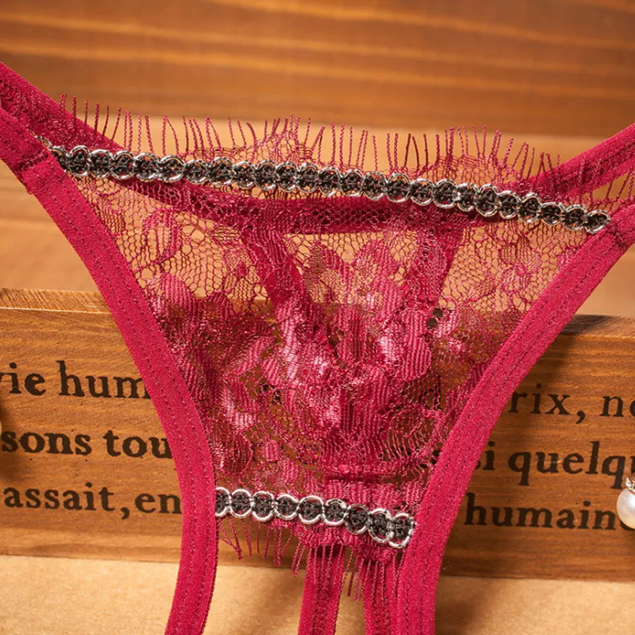 Женские кружевные трусы Lynmiss с заниженной талией, соблазнительное сексуальное нижнее белье с жемчужной подвеской, женские трусы