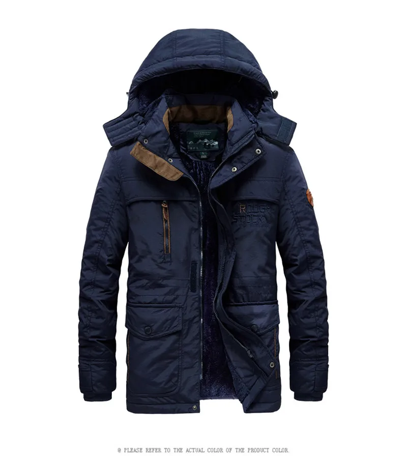 Мужская зимняя куртка на флисовой подкладке, с меховым воротником и капюшоном