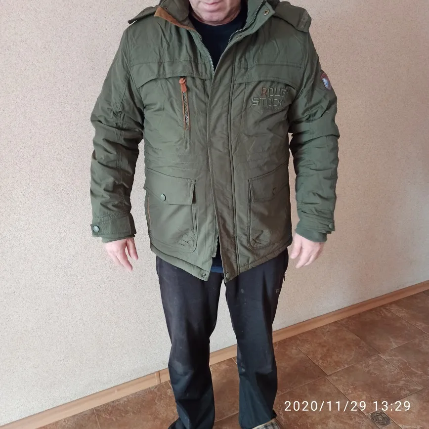 Куртка цвета хаки на фото легче, чем на самом деле. Размер 6XL подходит для фигуры 182 см и 102 кг.