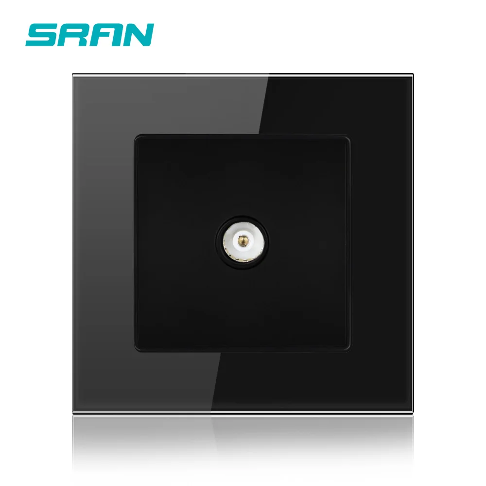 Панель из закаленного стекла SRAN, с настенной розеткой для телевизора, 86 х 86 мм, домашний декор, обычная, слабая, электрическая, черная, A601-01B