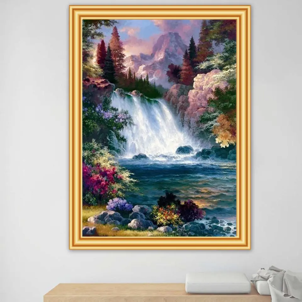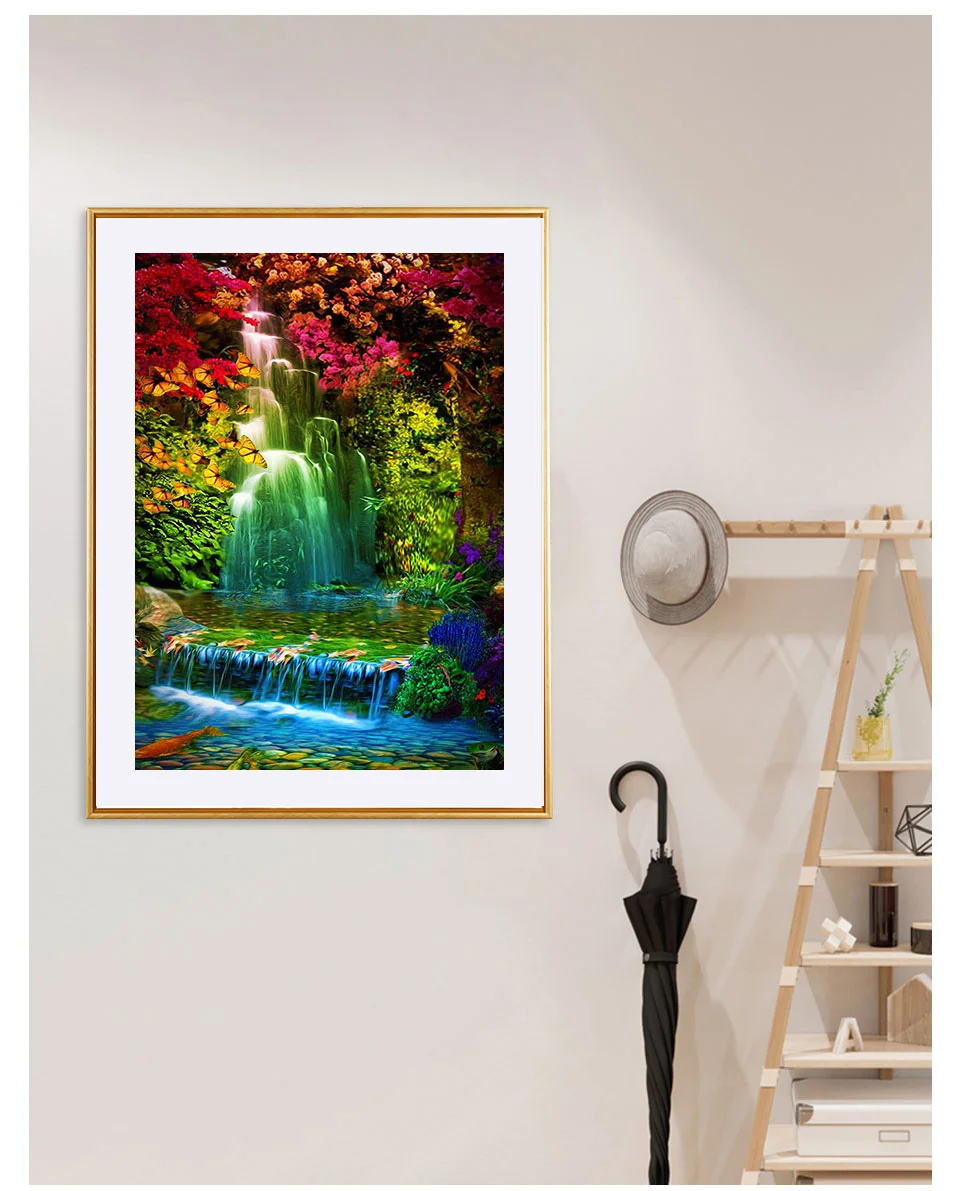Алмазная 5D картина сделай сам, Набор для вышивки крестиком с изображением водопада, пейзажа, полная выкладка, мозаика для декора Стразы