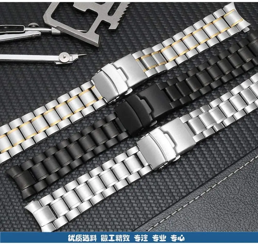 Ремешок из нержавеющей стали для часов, сменный изогнутый браслет с двойной застежкой, 18 мм 20 мм 22 мм 24 мм