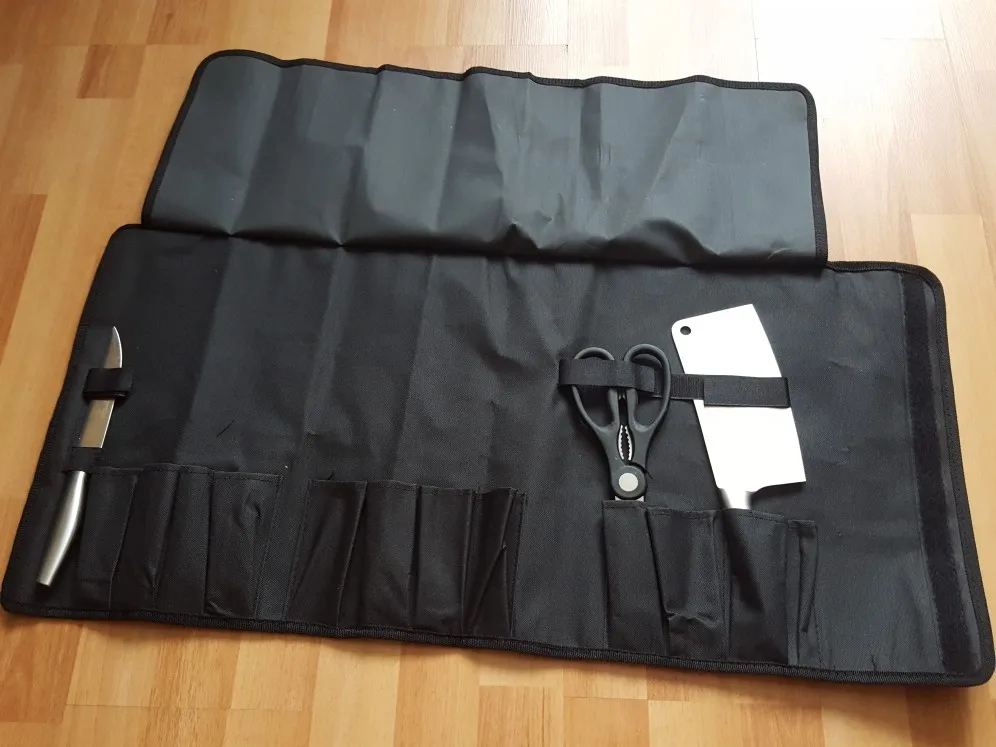 Сумка Sowoll для ножа шеф-повара, 8 черных карманов