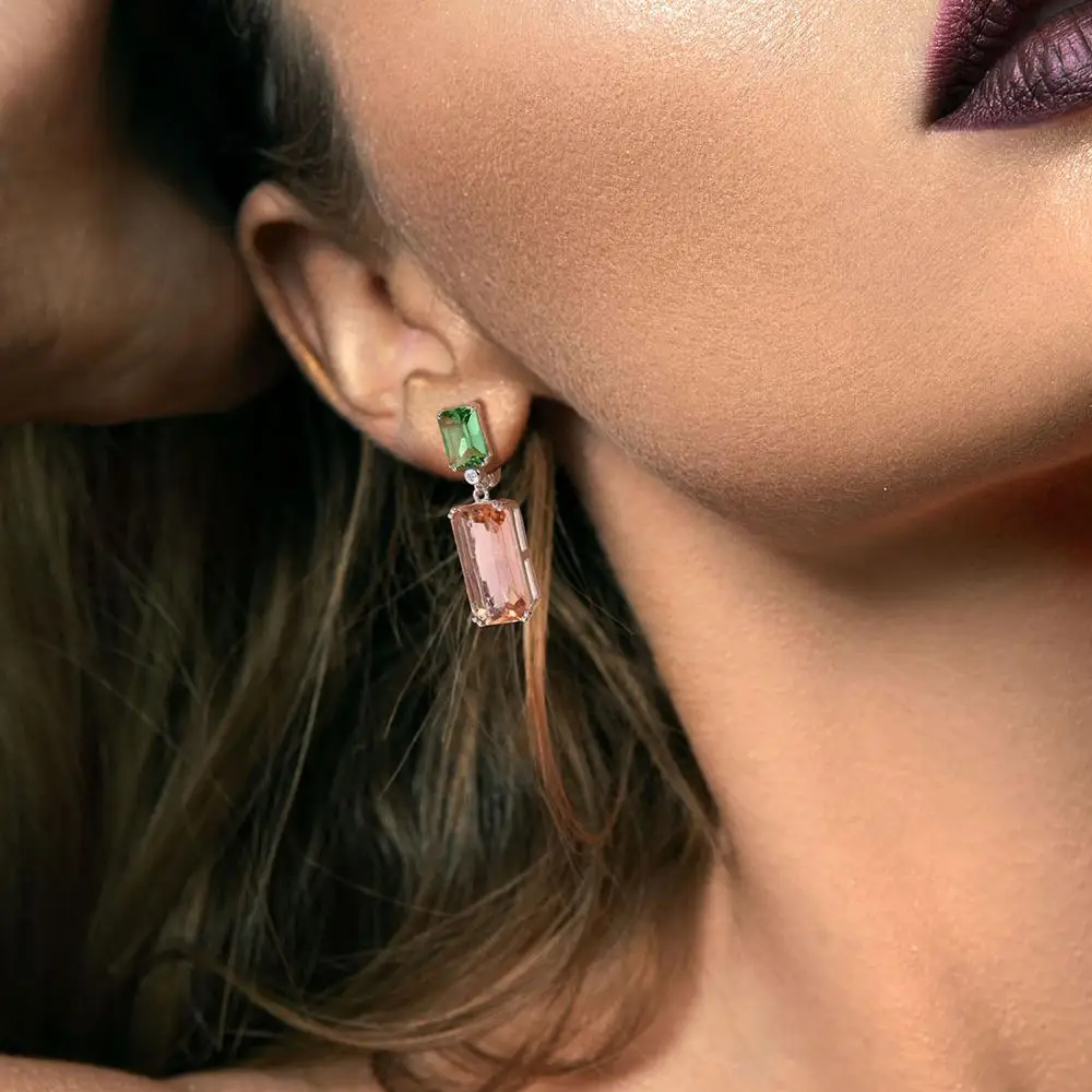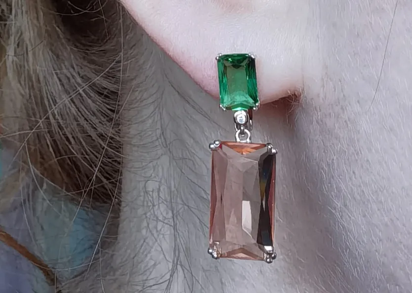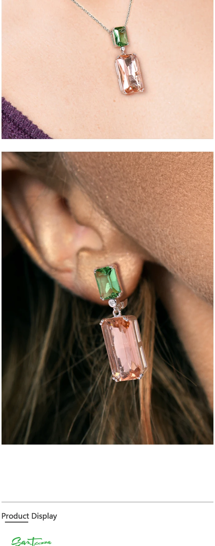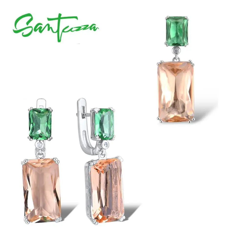 Набор из серебра 925 пробы, с подвеской SANTUZZA, с кристаллами зеленого шампанского, восьмиугольника набор украшений для женщин пробы, Подарочные ювелирные украшения