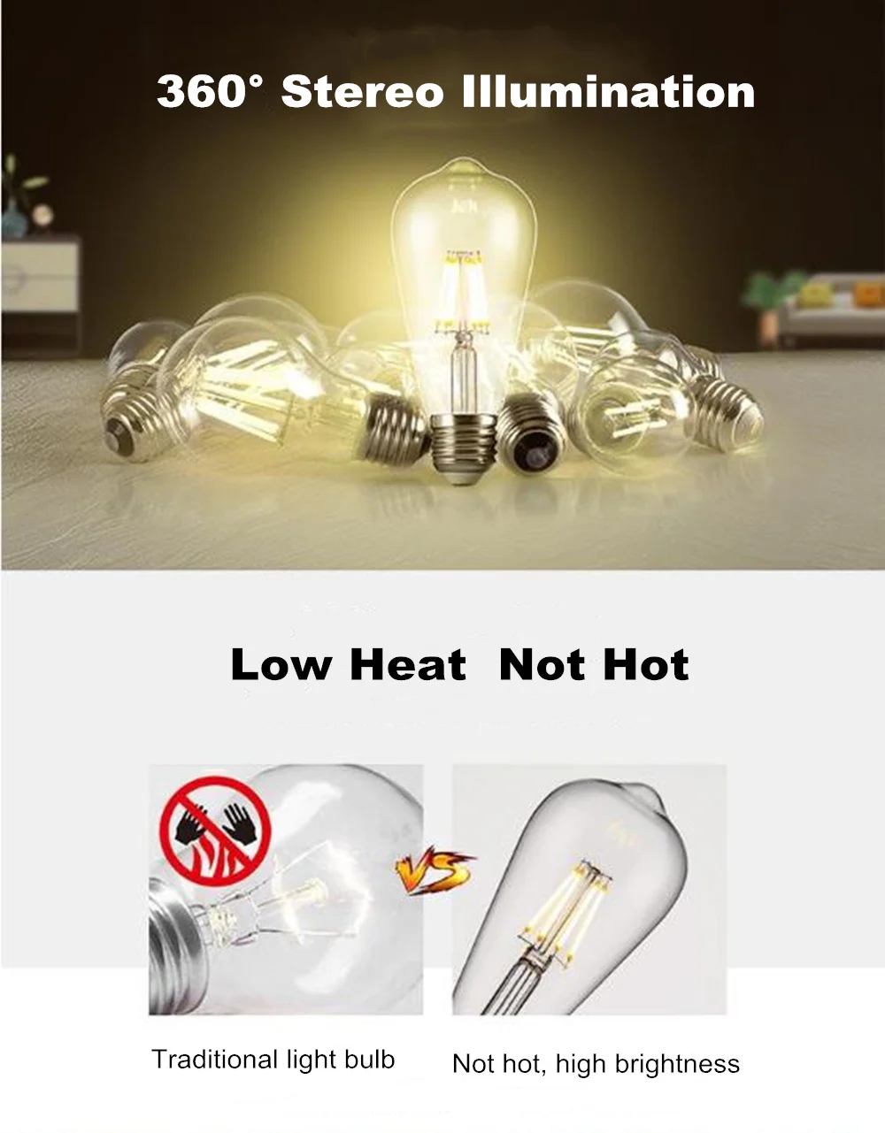Светодиодный светильник накаливания Эдисона 4 Вт/6 Вт/8 Вт ST64, Ретро лампа, Вольфрамовая лампа, светильник, лампа E27 для дома