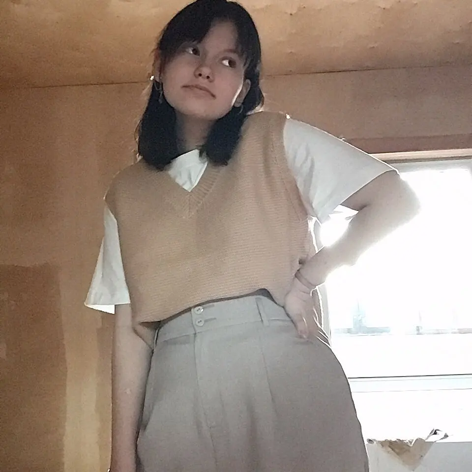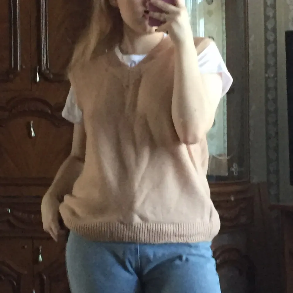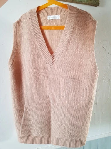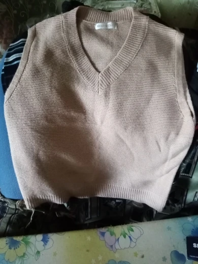 жилетка супер, очень приятная, по размеру ок, я ношу s-m и села оверсайз, как я и хотела, немного пахла, но это легко поправимо, доставка 2 недели советую!!