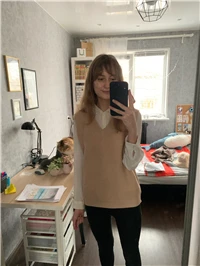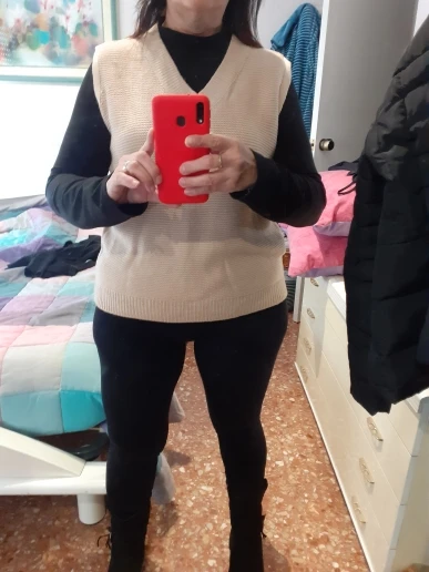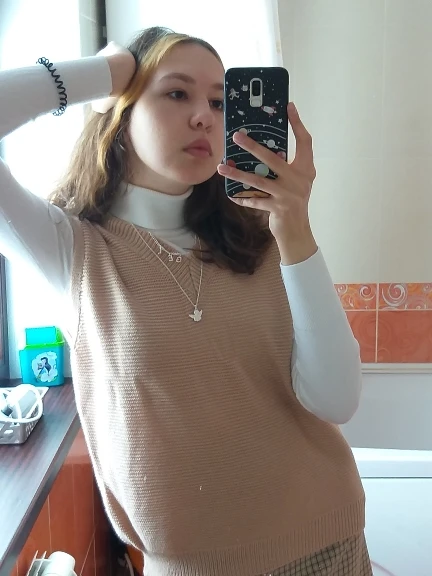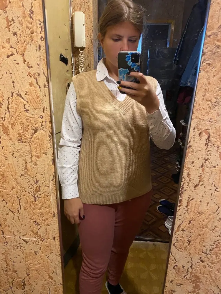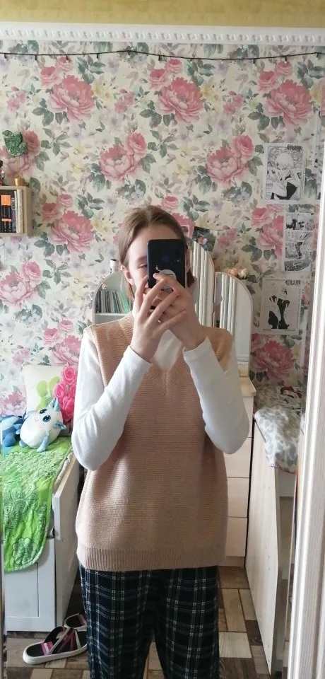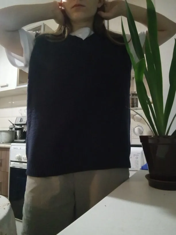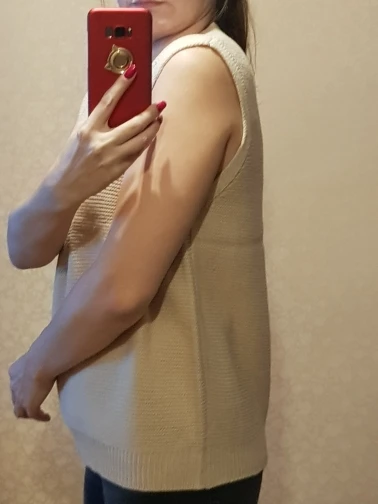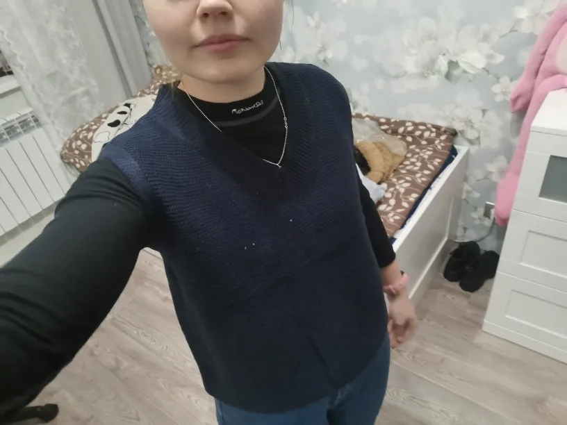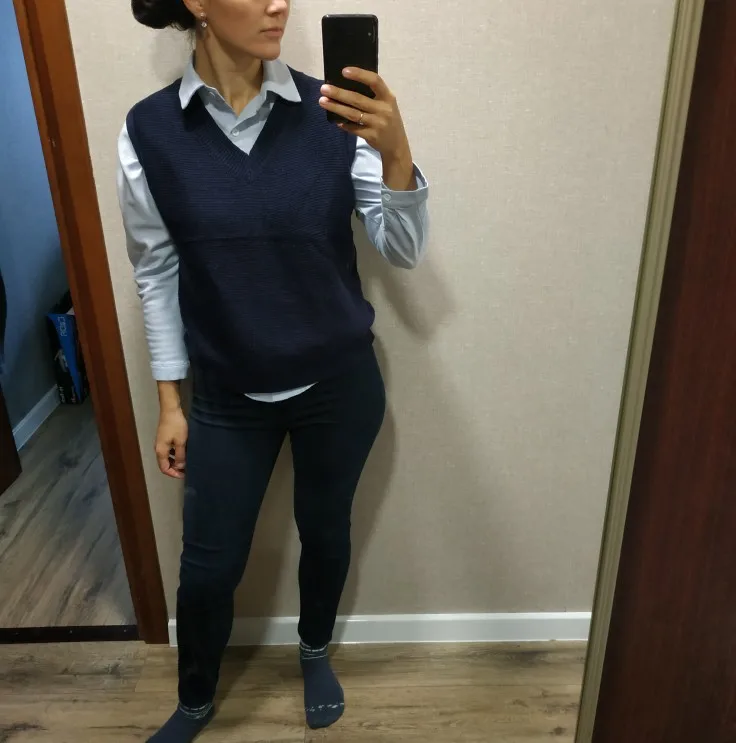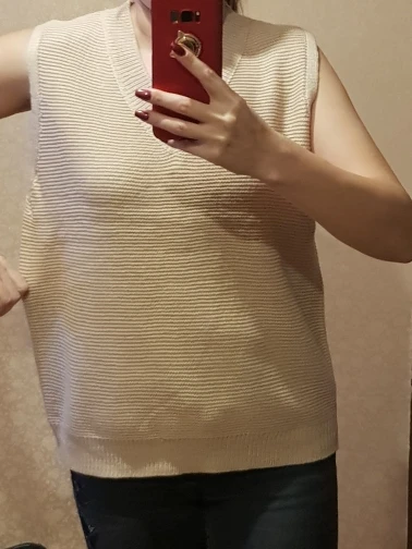 Жилетка милая, приятная. Чуть тяжело заправлять под низ из-за плотного материала, но в остальном все прекрасно. Единственное что (мой рост около 165) онп оказалась для меня длинновата, но носить буду!
