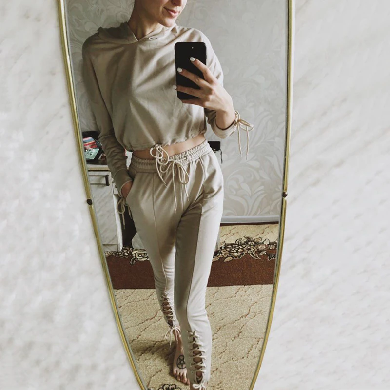 Костюм спортивный женский осенний облегающий, цвета хаки