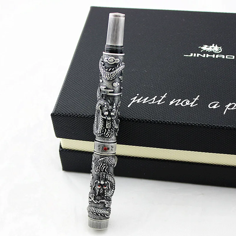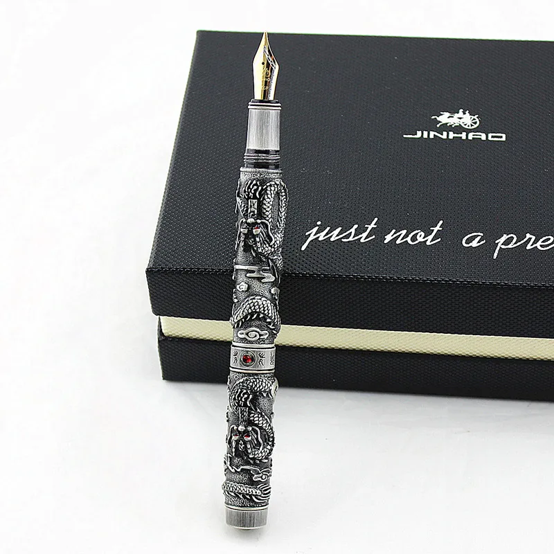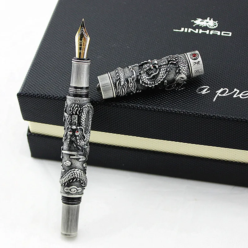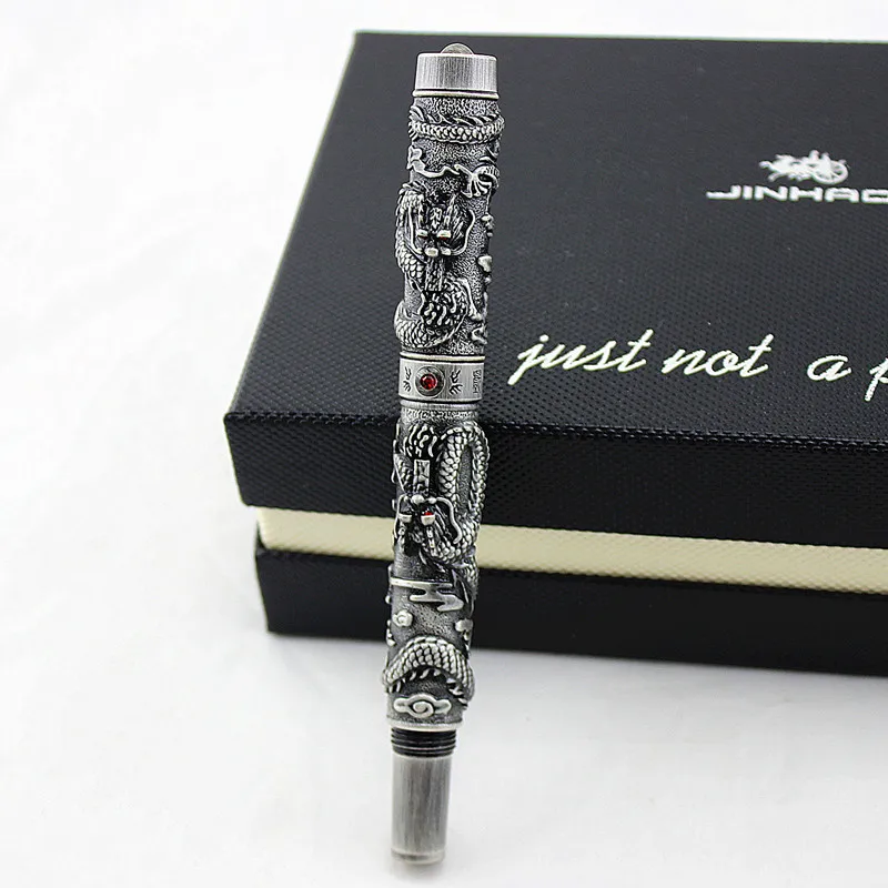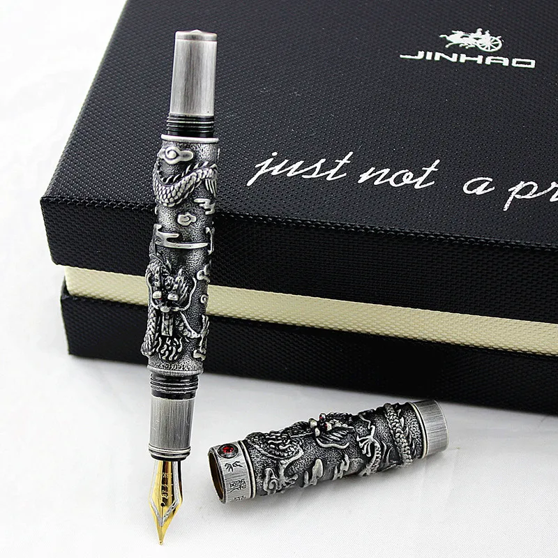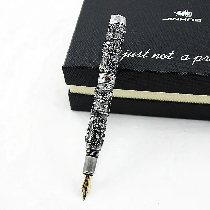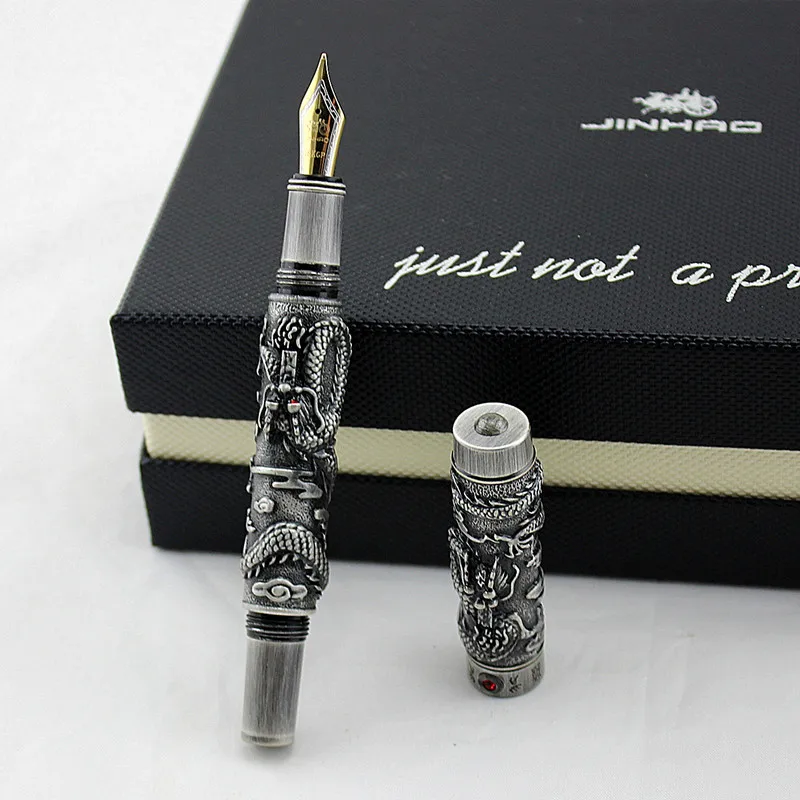 Перьевая ручка Jinhao, двойная, играющий Дракон А, со средним наконечником, 0,5 мм, с 3d-тиснением, металлическая