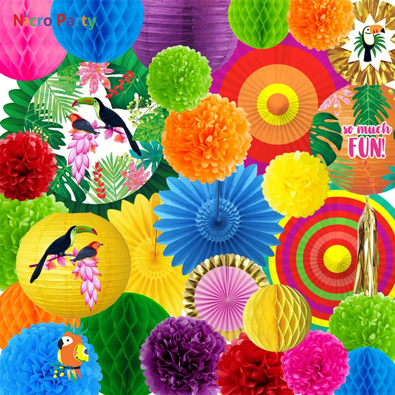 Bыбрать отправку из Испании или Бельгии, Nicro 30 шт.компл. Тропический попугай тема комплект украшений для вечеринки Aloha Луо Гавайский пляжный Baby Shower День рождения # Set135