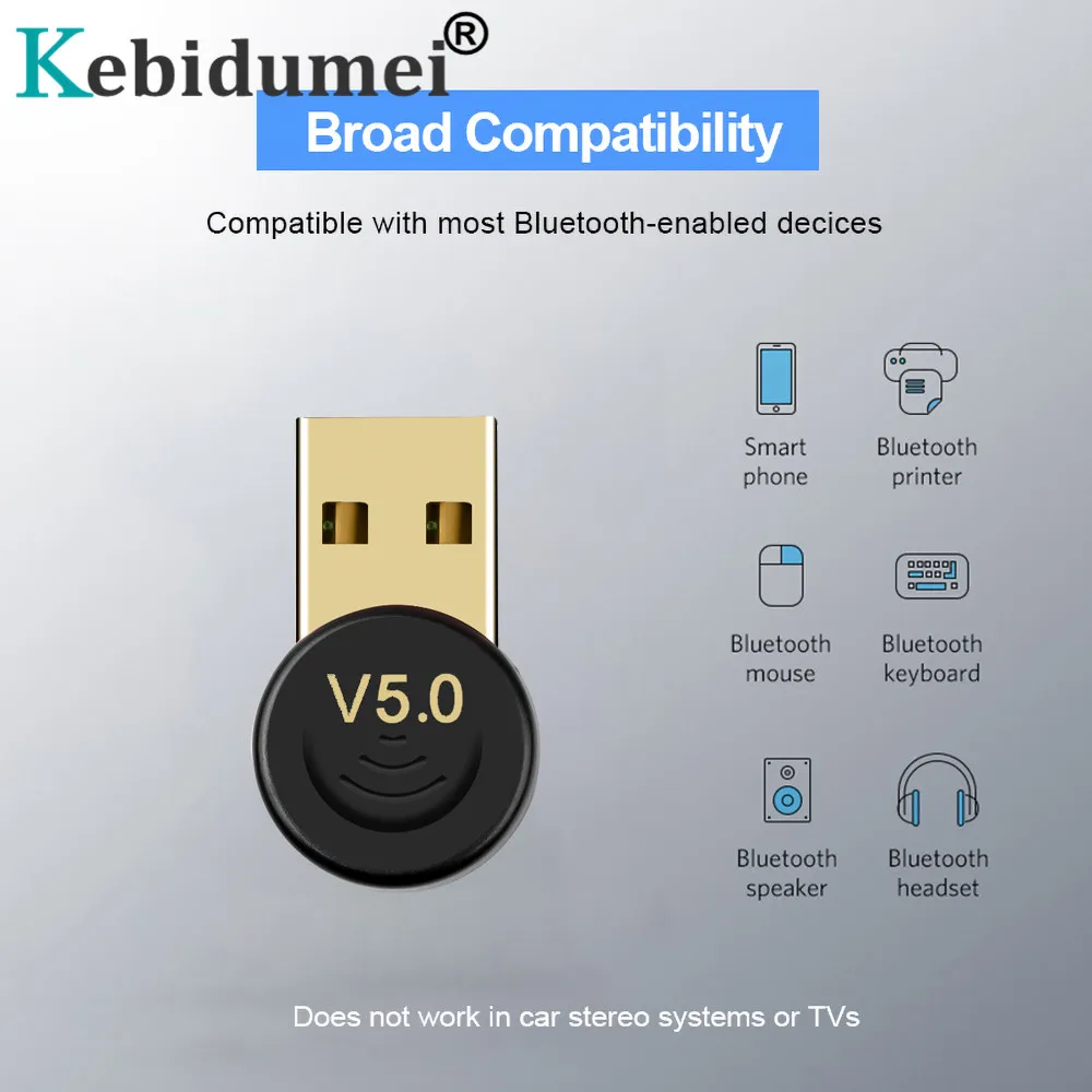 Bluetooth-адаптер Kebidumei, USB-ключ для компьютера, беспроводной USB-передатчик Bluetooth 5,0, музыкальный приемник, Bluetooth-адаптер